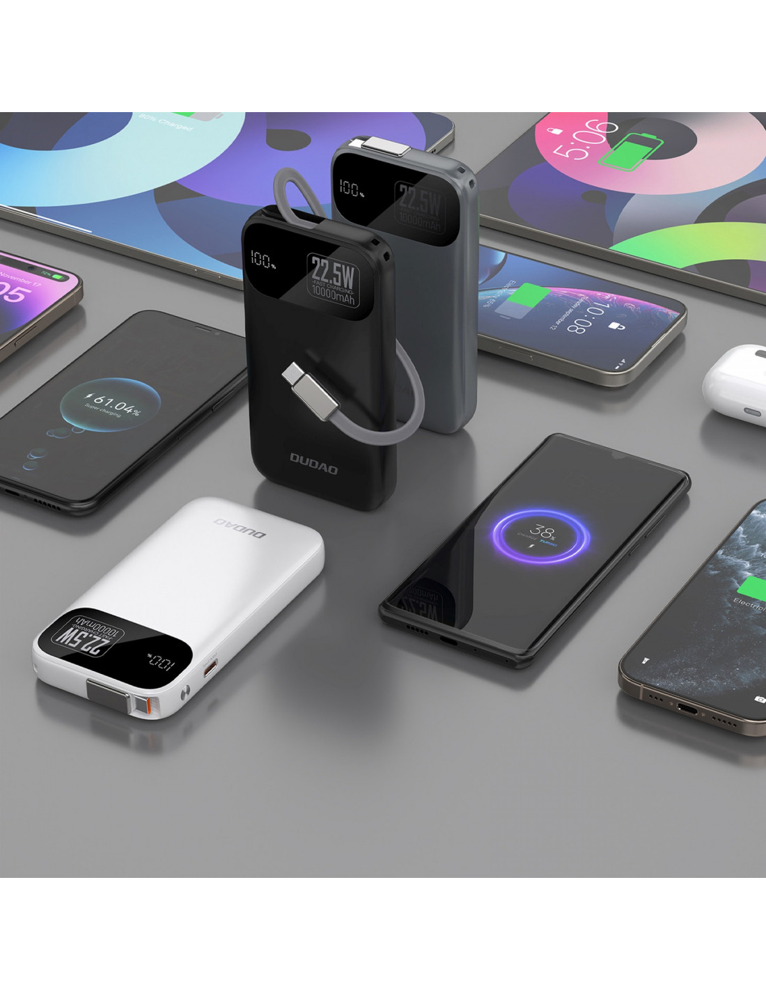„Dudao K31“ – tai moderni 10 000 mAh talpos išorinė baterija, pasižyminti elegantišku dizainu ir išskirtiniu funkcionalumu. Dėl greito įkrovimo iki 22,5 W ir integruoto, ištraukiamo 70 cm ilgio USB-C laido , ji užtikrina patogumą ir mobilumą bet kokioje situacijoje. Įrengtas skaitmeninis LED ekranas rodo realaus laiko energijos lygį, o išmanioji grandinė apsaugo įrenginius nuo trumpojo jungimo, perkrovimo ir perkaitimo. Dėl kompaktiško dydžio ir juodos spalvos ji yra patikimas maitinimo šaltinis tiek kelionėms, tiek kasdieniam naudojimui.