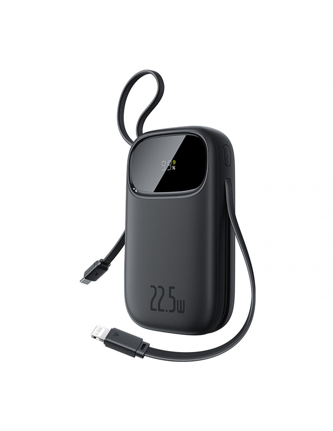 20000mAh 22,5W nešiojama baterija su ekranu, USB-C, iPhone Lightning laidais – juoda
