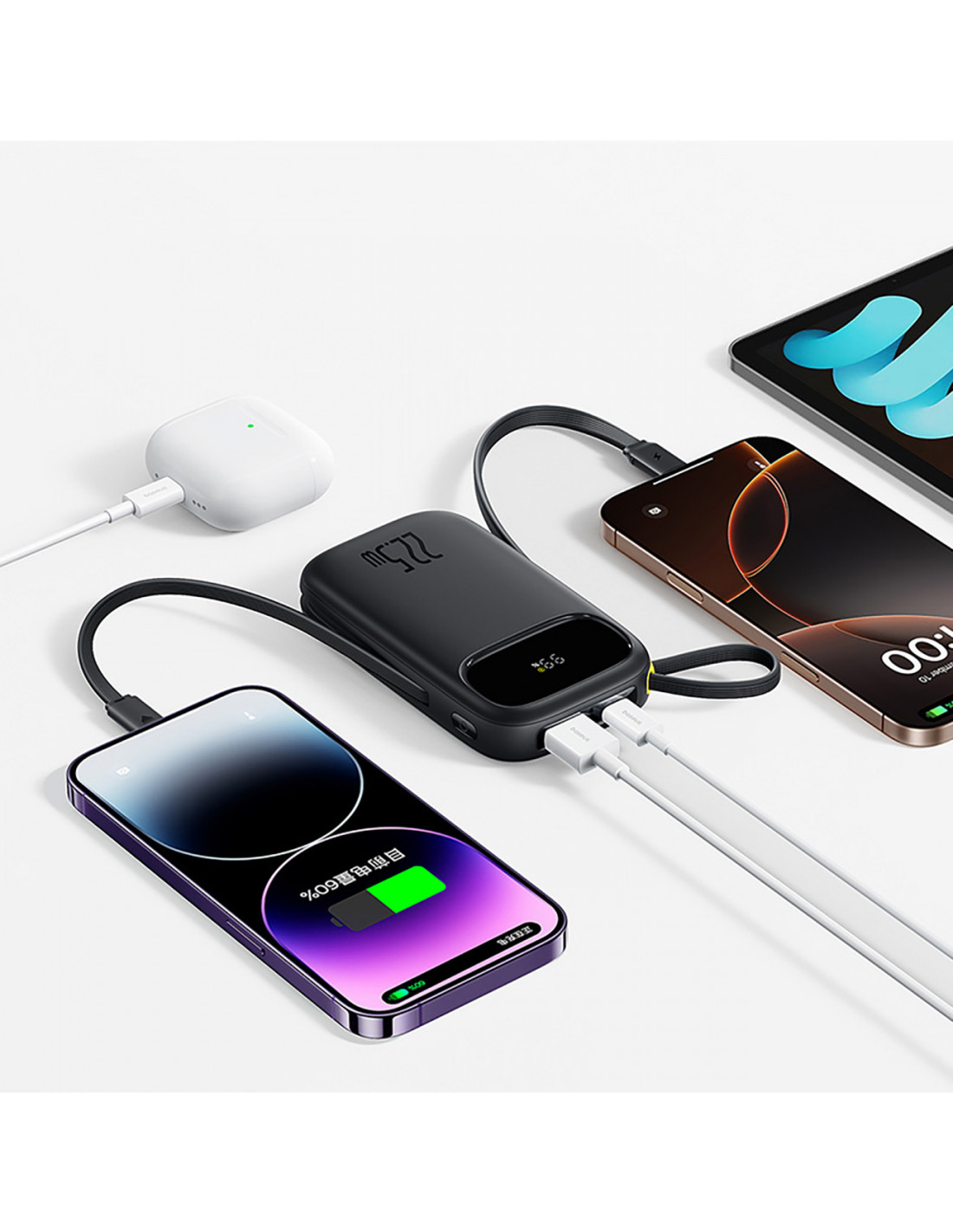yra patikimas energijos šaltinis, kurį galite pasiimti bet kur – net į lėktuvą. Turėdami 20 000 mAh talpos ir 22,5 W greito įkrovimo funkciją, galite maitinti tiek „iPhone“, tiek „Android“ išmaniuosius telefonus. Integruoti USB-C ir „Lightning“ laidai užtikrina, kad visada turėtumėte tinkamą prievadą po ranka, o vienu metu įkraudami iki keturių įrenginių galite išlaikyti pilną galią, nepriklausomai nuo situacijos. Skaitmeninis ekranas informuoja apie likusį įkrovos lygį, suteikdamas jums visišką kontrolę. Išmanioji NTX aušinimo sistema ir grafeno technologija užtikrina saugų naudojimą. Kompaktiškas dizainas ir virvelės funkcija paverčia šią išorinę bateriją puikiu palydovu kasdieniams iššūkiams.