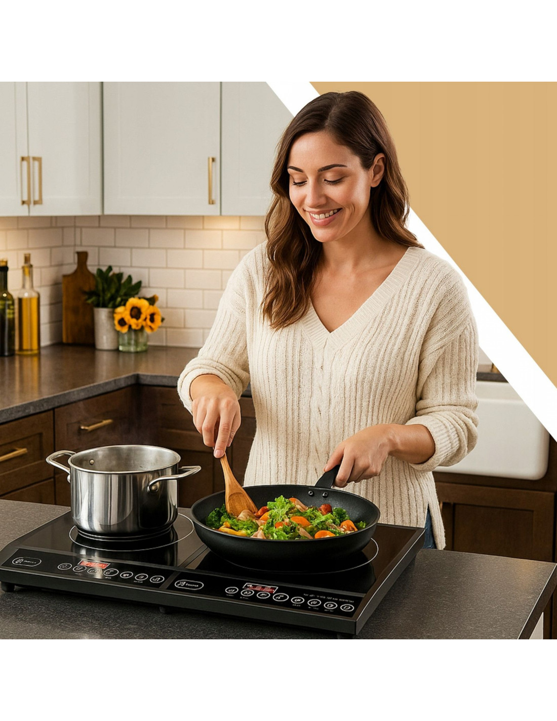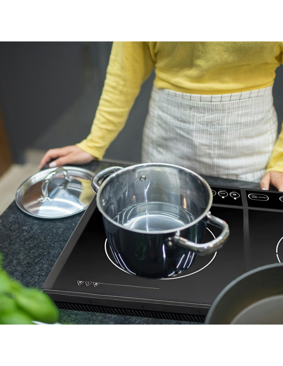 - - Dviejų degiklių indukcinė kaitlentė, kurios galia 4000 W (2 x 2000 W)
