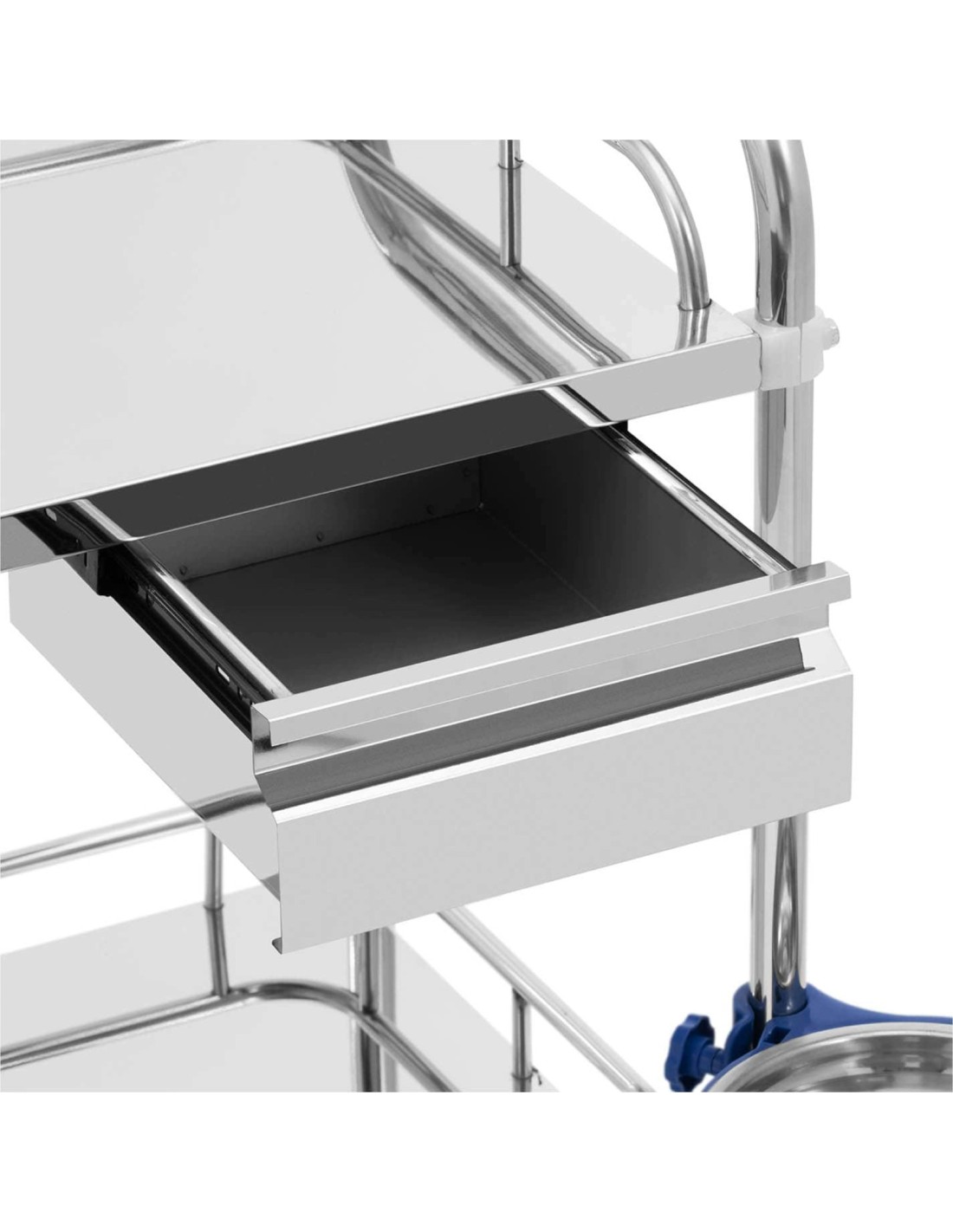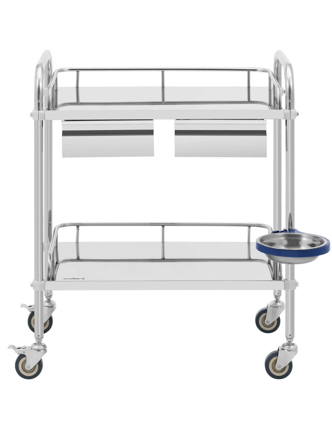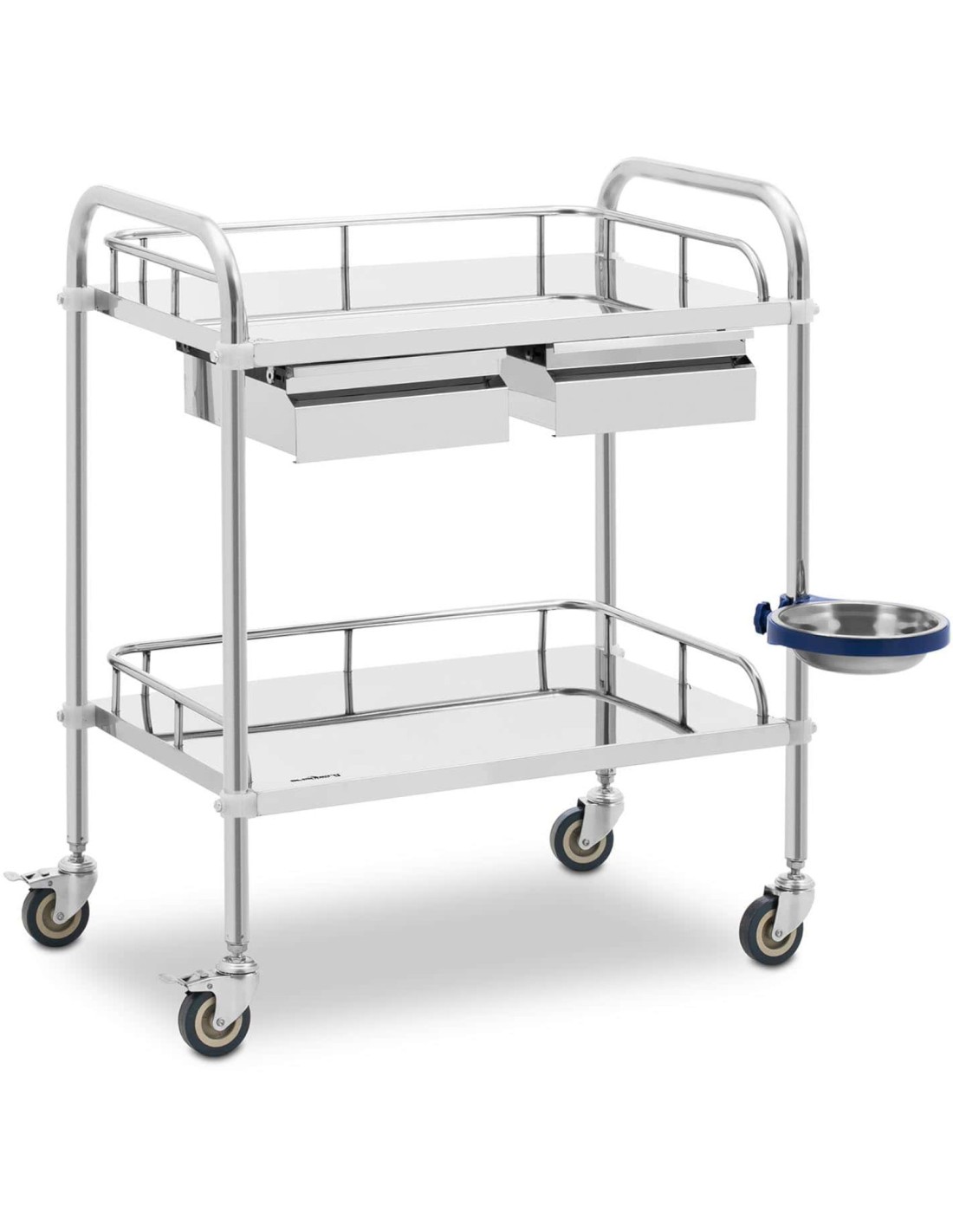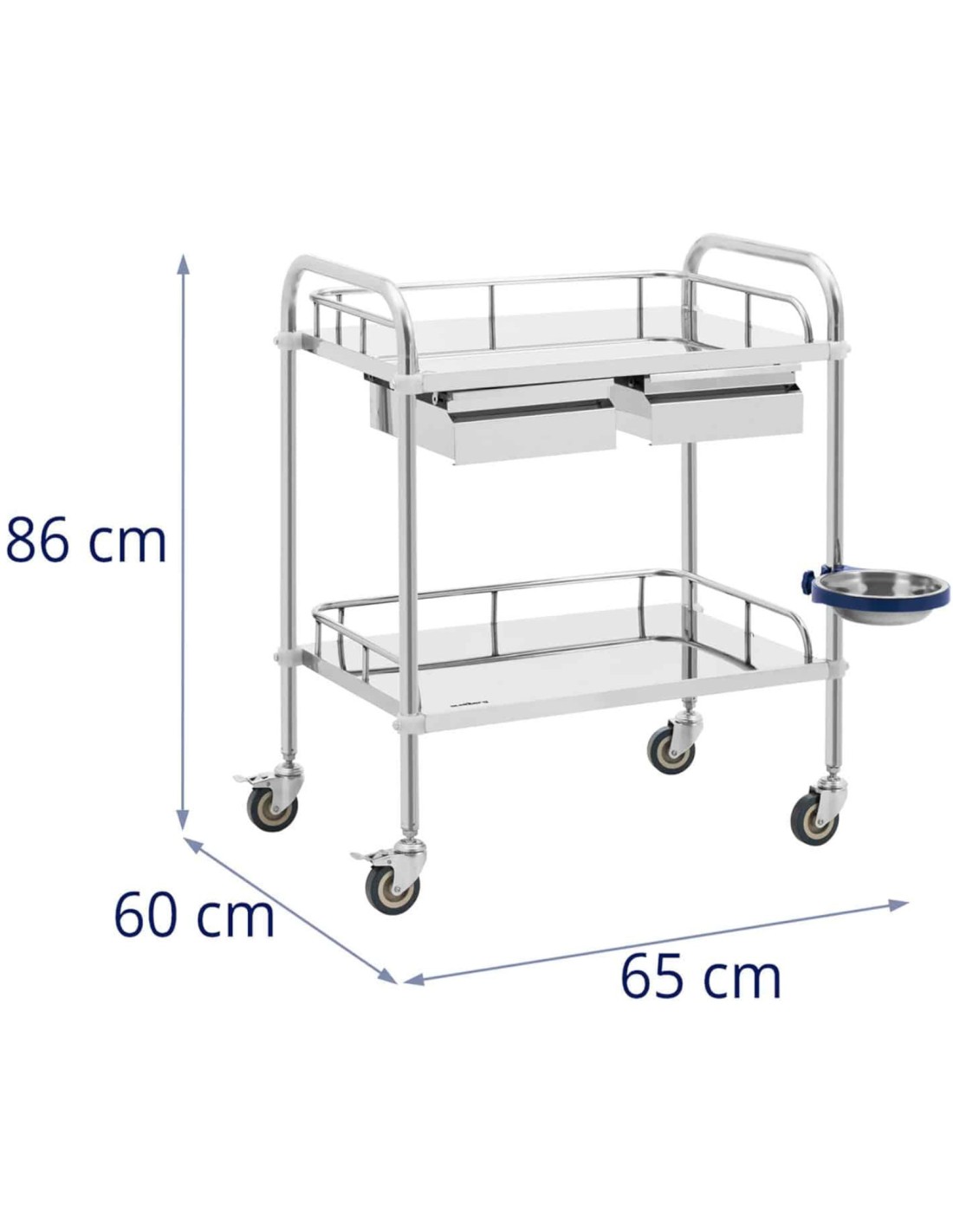 Laboratorinis kosmetinis gydymo vežimėlis pagamintas iš plieno, 2 lentynos, 2 stalčiai, 65 x 60 x 86 cm, 20 kg