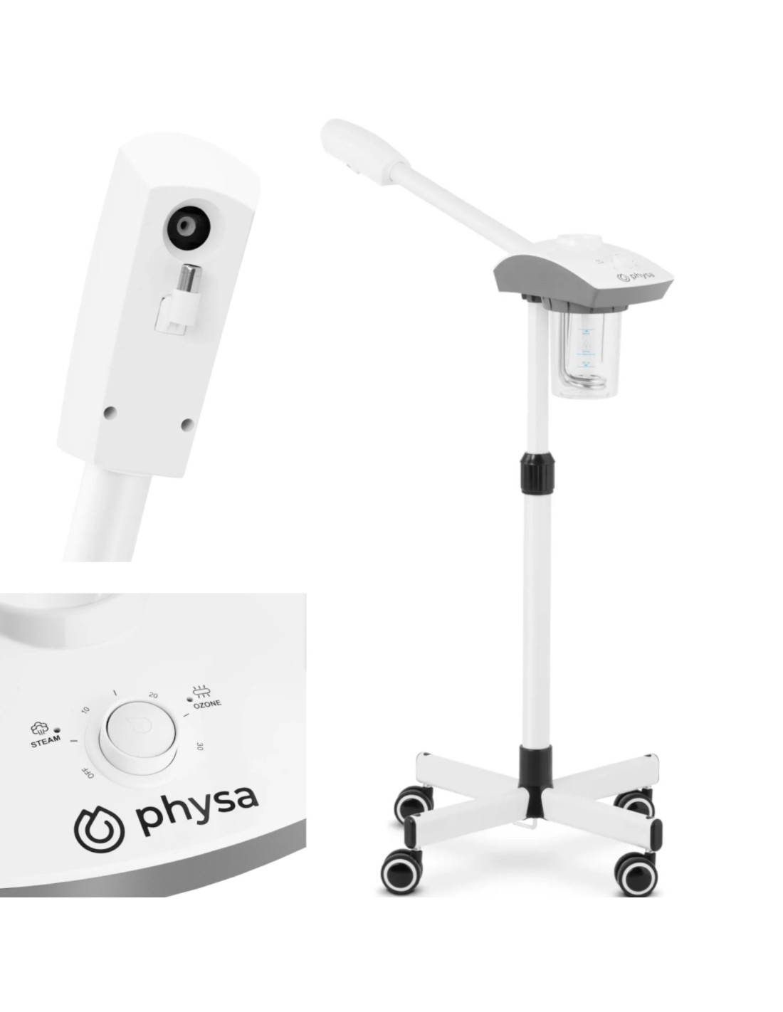 Physa prekės ženklo wapozonas puikiai tinka profesionaliems grožio ir masažo salonams, SPA centrams, makiažo studijoms ir sveikatingumo viešbučiams, taip pat asmeniniam naudojimui. Veido garintuvas puikiai tinka atpalaiduojančioms procedūroms dėl aromaterapijos funkcijos. Prietaisu itin paprasta naudotis. Garų generavimas nustatomas naudojant pagrindinį jungiklį. 700 ml vandens bako užteks mažiau nei valandai, jį bus galima greitai ir lengvai užpildyti. Įpylus vandens, prietaisas automatiškai įsijungia 30 sekundžių ir yra paruoštas naudoti per labai trumpą laiką. Dėl keturių sklandžiai besisukančių ratų įrenginį lengva perkelti į kitą vietą. Itin ilgas laidas, lankstus aukščio reguliavimas ir 360° besisukantis garų antgalis leidžia lengvai reguliuoti garintuvą pagal kliento ar gydymo poreikius. Garintuvas pagamintas iš aukštos kokybės medžiagų. Pagrindas pagamintas iš nerūdijančio plieno , o korpusas pagamintas iš patvaraus plastiko . Dėl šios priežasties garintuvas yra ne tik ypač atsparus mechaniniams ir cheminiams veiksniams, bet ir lengvai valomas bei prižiūrimas.