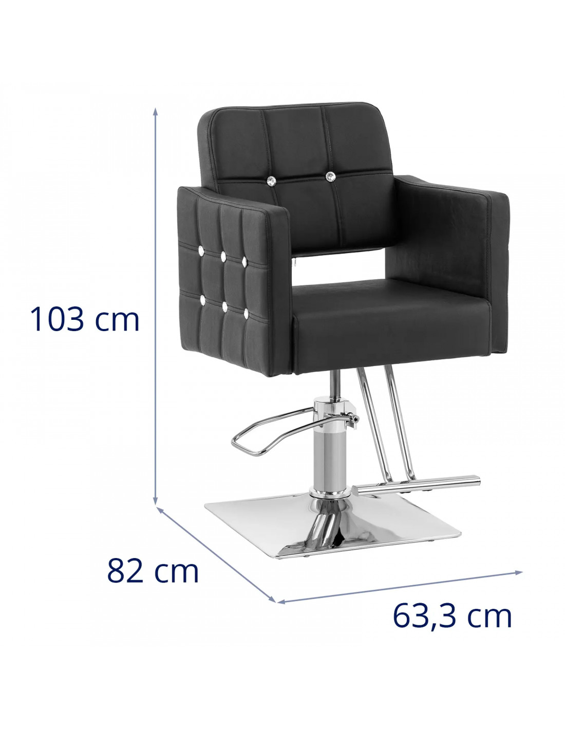 • - Kirpyklos kėdės sėdynės padėtį galima reguliuoti hidrauliniu siurbliu 49–63 cm diapazone, o kėdę taip pat galima pasukti 360 laipsnių kampu,