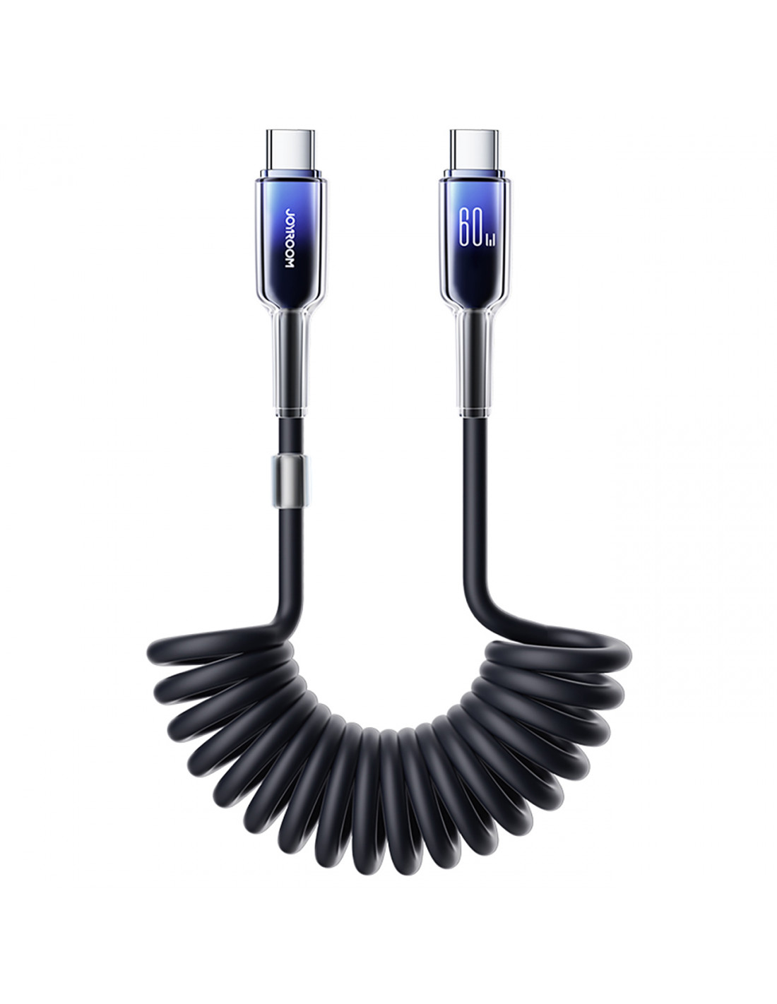 - - USB-C spiralinis kabelis - USB-C Crystal-Clear serijos 60W 1,5m - juodas