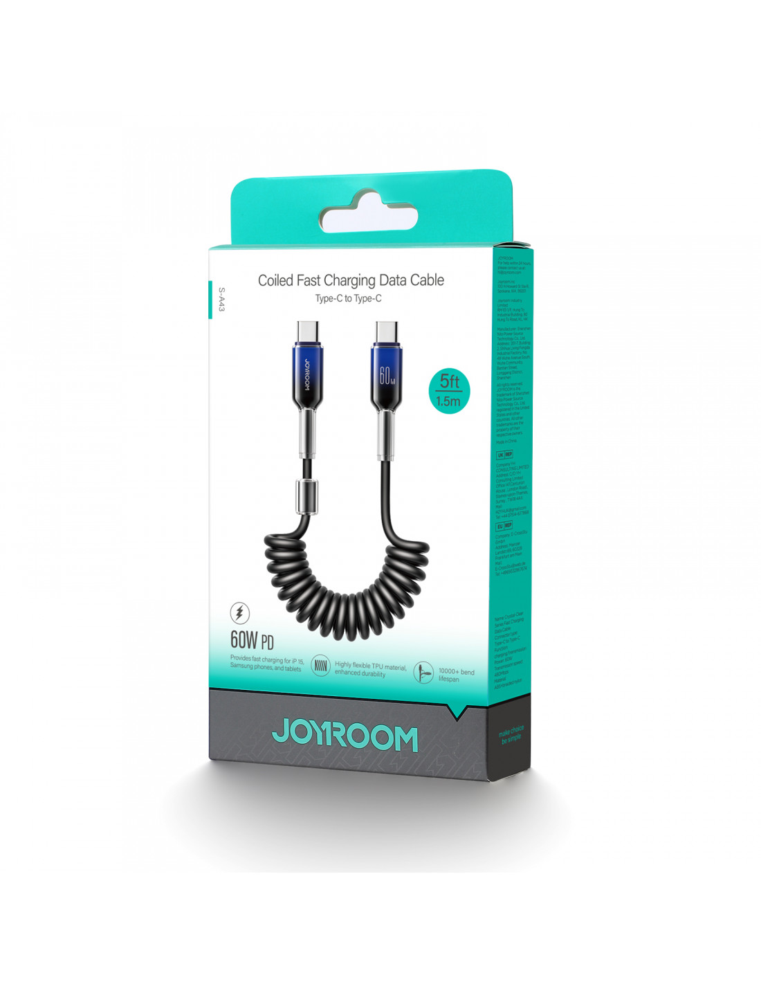 „Joyroom S-A43 Crystal-Clear“ serijos spiralinis laidas yra novatoriškas sprendimas, kuris patenkins net ir reikliausių vartotojų poreikius. Dėl 60 W „Power Delivery“ technologijos jis užtikrina žaibišką tokių įrenginių kaip „iPhone 15“, „Samsung Galaxy“ ir planšetinių kompiuterių įkrovimą. Laido spiralinė konstrukcija yra itin lanksti ir lengvai laikoma, o tvirta konstrukcija užtikrina ilgalaikį naudojimą. Be to, laidas turi magnetinį žiedą, kuris pašalina elektromagnetinius trukdžius ir užtikrina stabilų ryšį net naudojant „CarPlay“. Rinkitės laidą, kuris derina funkcionalumą, greitį ir saugumą!