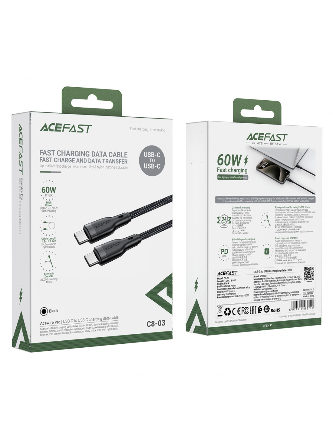 „Acefast C8-03“ laidas nustebins jus savo patvarumu ir patikimumu, todėl kasdienis elektronikos prietaisų naudojimas bus dar lengvesnis. Dėl tvirto nailono pynimo ir aliuminio jungčių jis pasiruošęs bet kokiems iššūkiams. Palaikydamas greitą įkrovimą iki 60 W ir užtikrindamas greitą duomenų perdavimą, „Acefast C8-03“ puikiai tinka visiems jūsų USB-C įrenginiams, įskaitant naujausius „iPhone 15“ modelius. Jis buvo išbandytas 25 000 lenkimų, įrodant išskirtinį jo patvarumą. Tai puikus pasirinkimas naudojimui namuose, biure ir kelionėse.