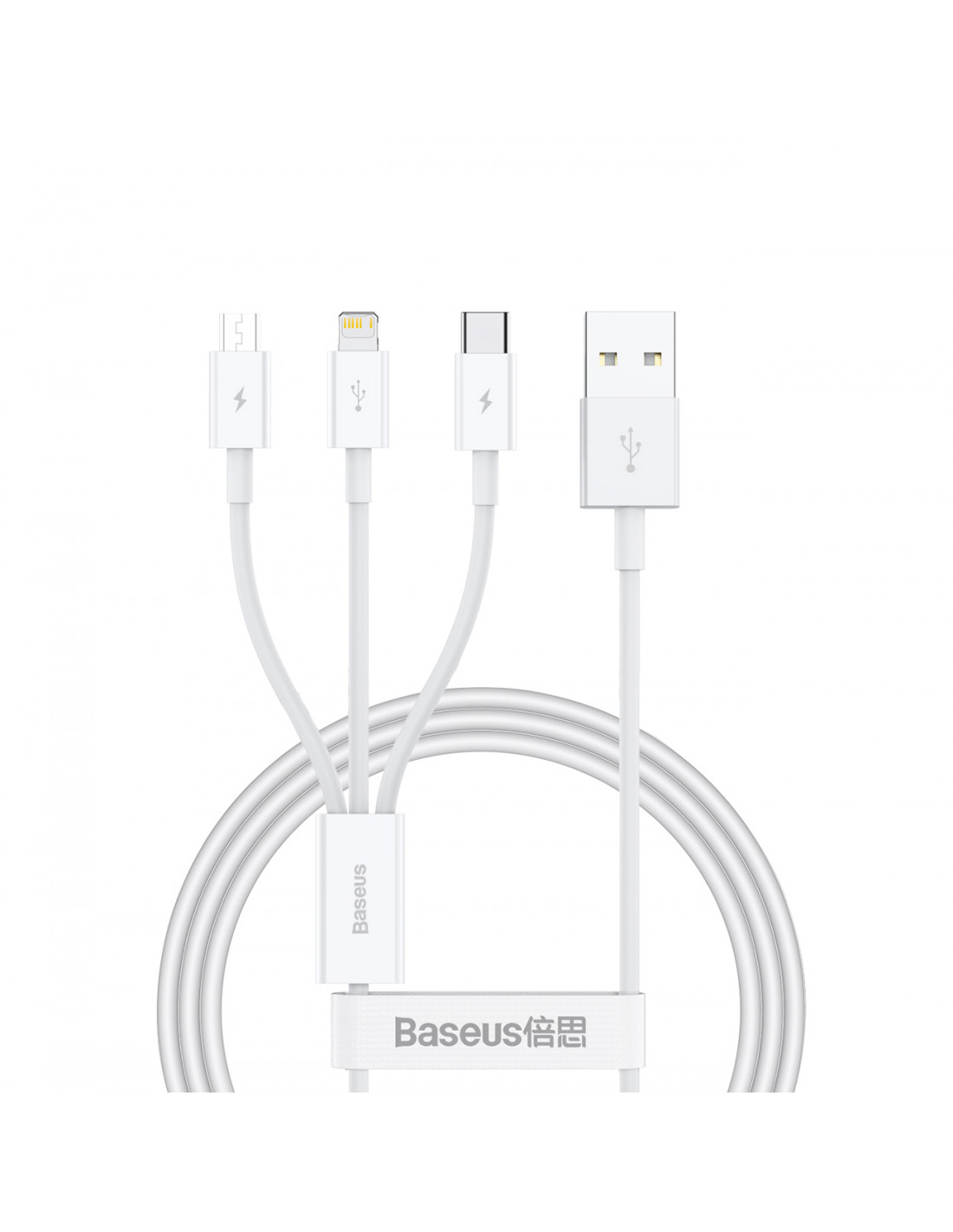 3in1 laidas Superior Series USB-A - USB-C / Lightning / micro USB 3.5A 1m - baltas