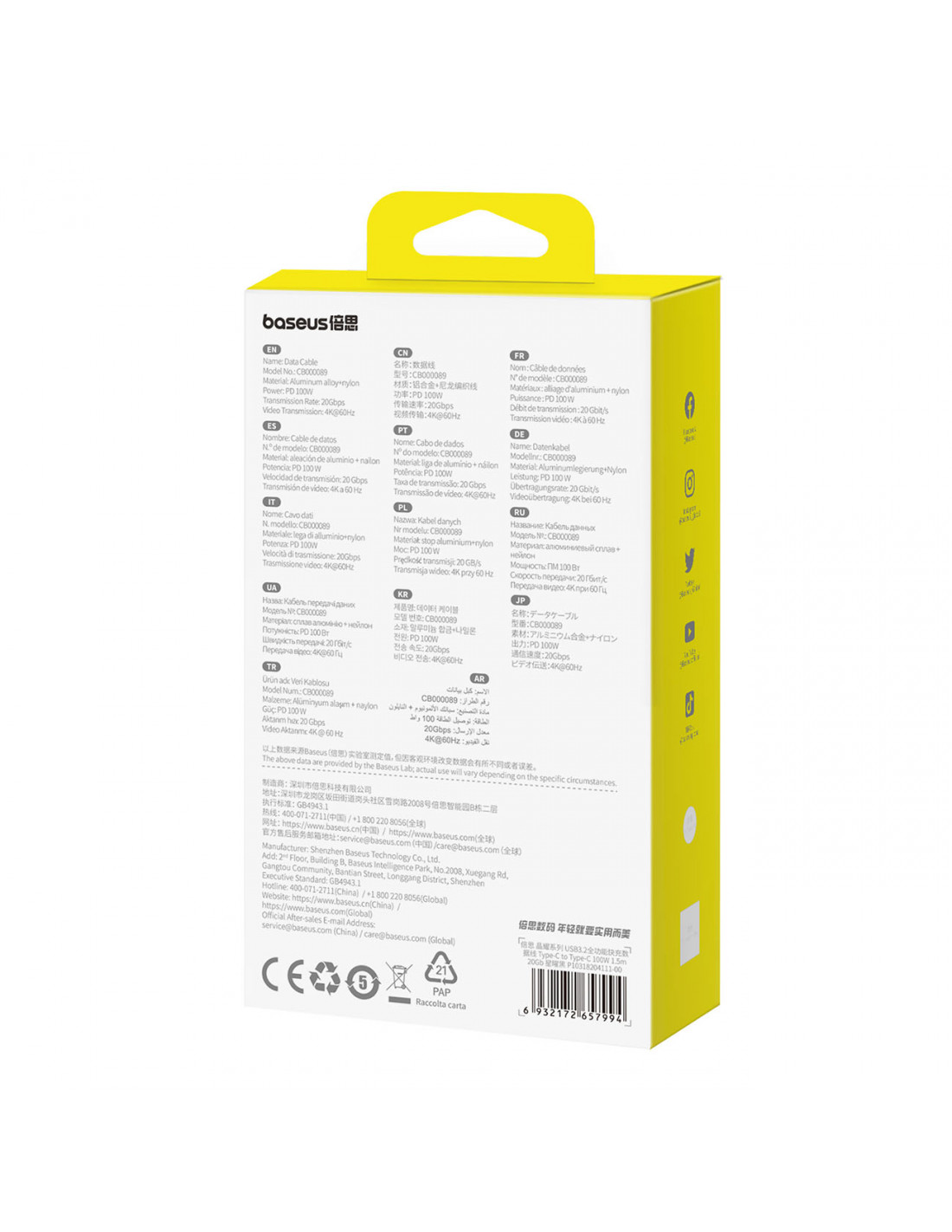 „Baseus Crystal Shine CB000089“ laidas turi USB 3.2 Gen2 technologiją, siūlančią dvigubą perdavimo greitį, 4K/60Hz didelės raiškos palaikymą ir itin greitą 100 W įkrovimą. Nesvarbu, ar jums reikia įkrauti nešiojamąjį kompiuterį, planšetinį kompiuterį ar telefoną, šis laidas užtikrina neprilygstamą našumą. Elegantiškas matinis dizainas su skaidriomis detalėmis ir pintas nailono dangtelis užtikrina patvarumą ir stilių.