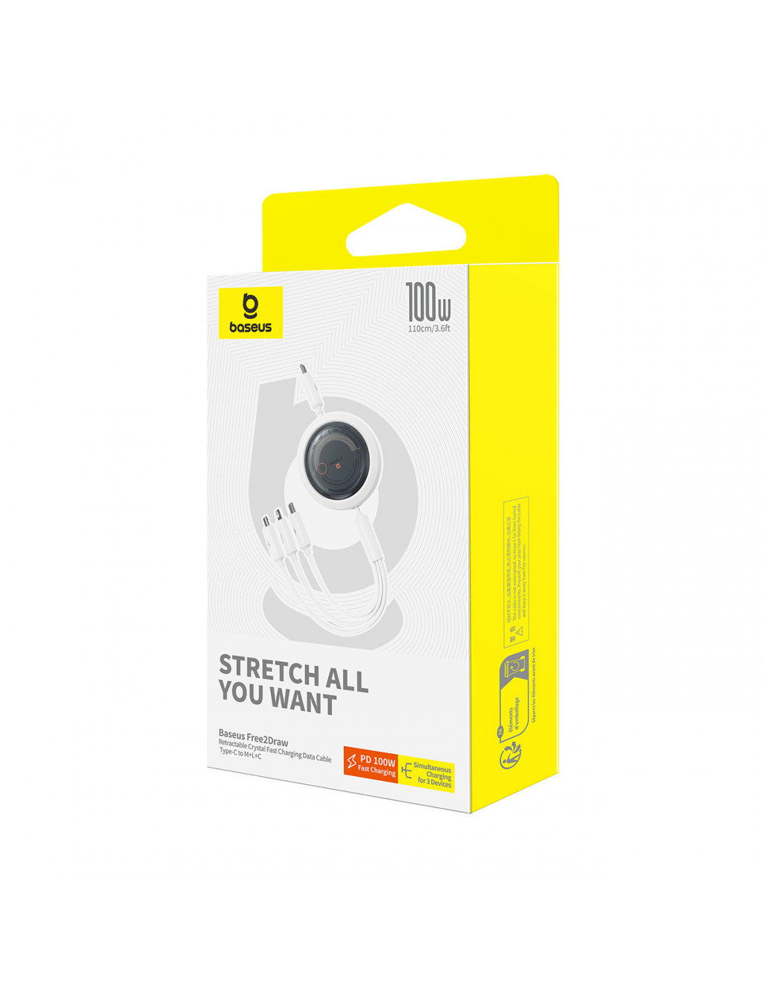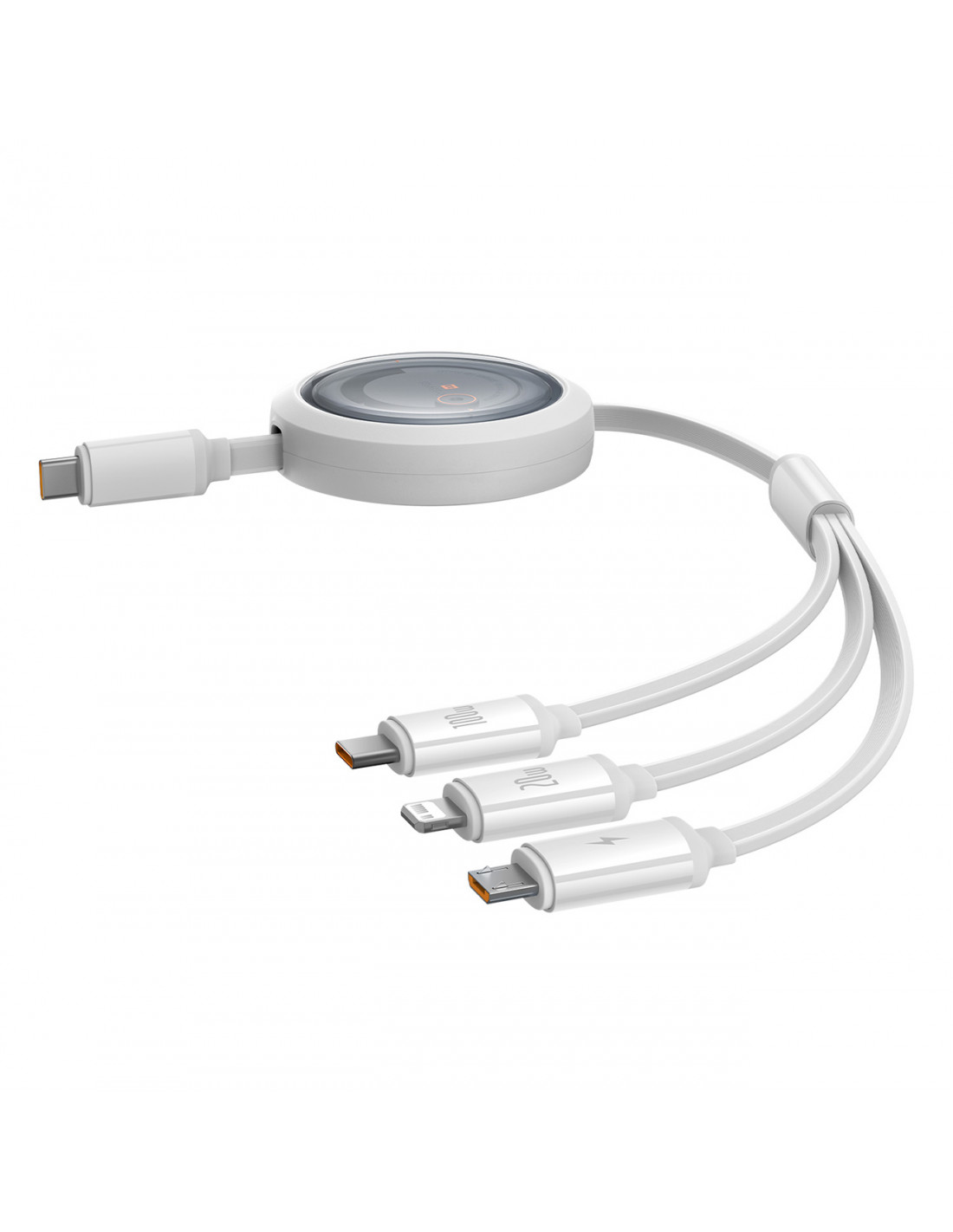 3in1 universalus ištraukiamas laidas USB-C - Lightning / USB-C / Micro USB 100W 1.1m - baltas
