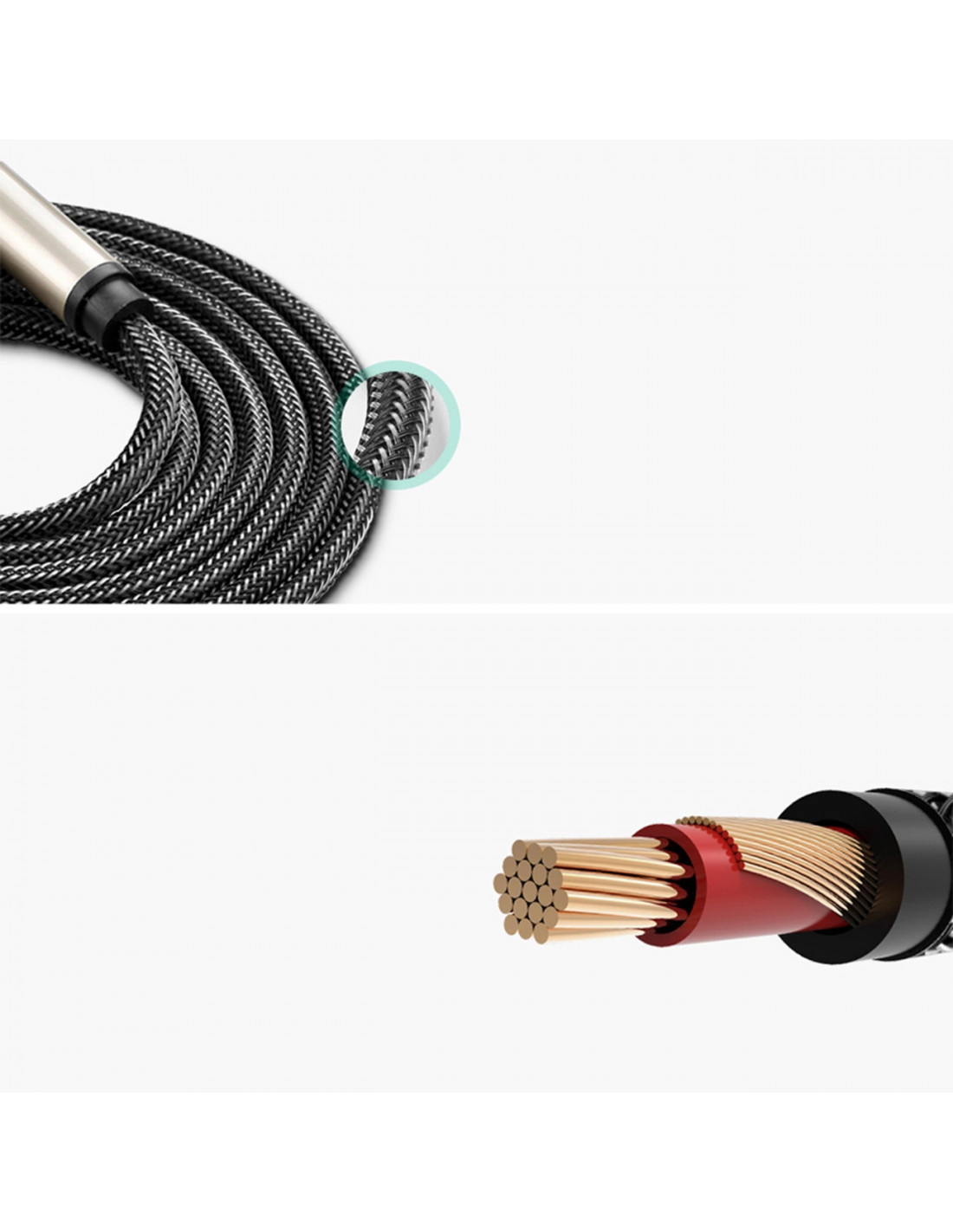 - - Jis pasižymi patvaria ir lanksčia konstrukcija . Cinko lydinio korpusas ir dvigubas nailono pynimas apsaugo laidą nuo pažeidimų.