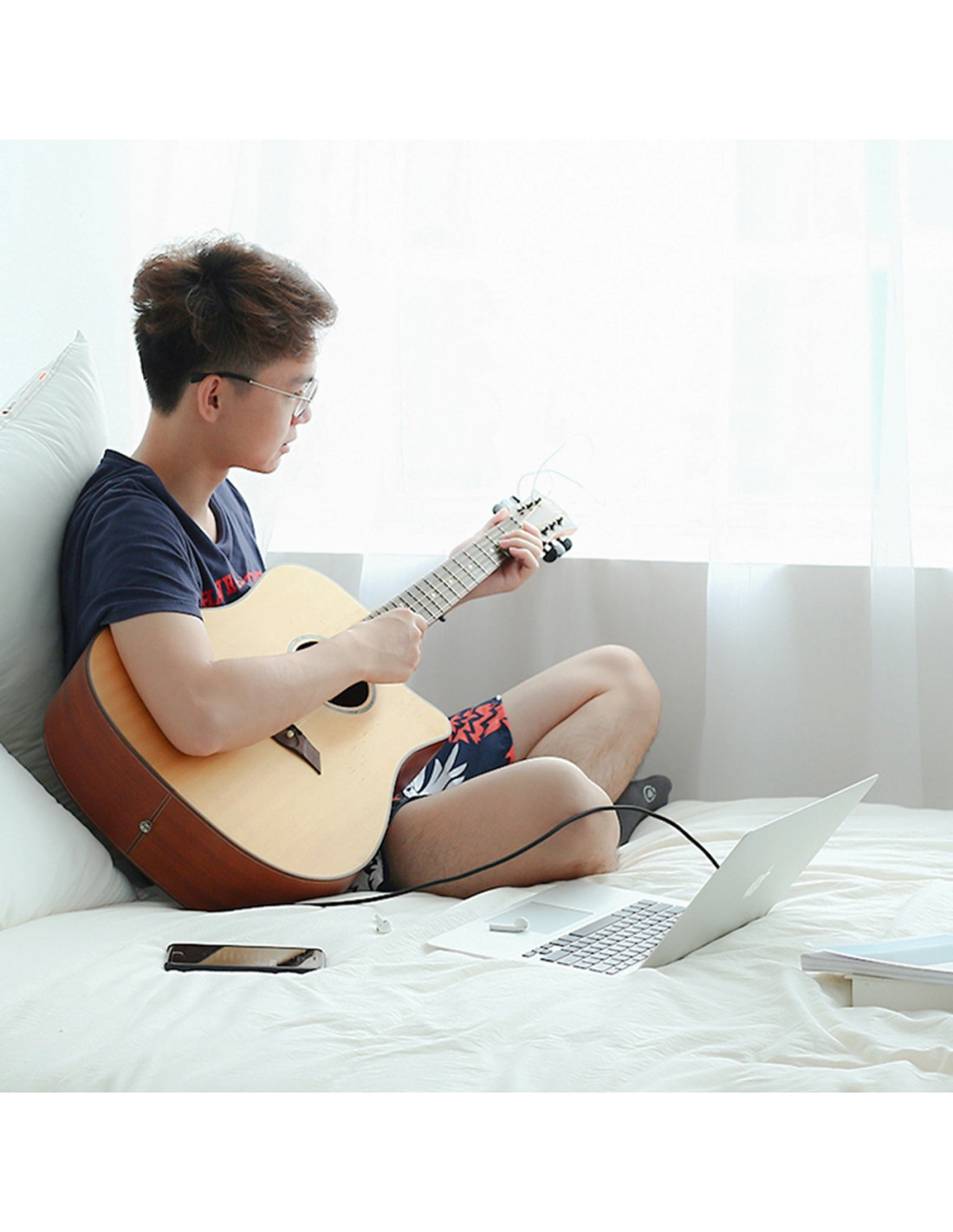- - Jungiasi prie įvairios garso įrangos . 3,5 mm ir 6,35 mm jungtys tinka planšetiniams kompiuteriams, telefonams, nešiojamiesiems kompiuteriams, elektrinėms gitaroms, maišytuvams ir kt.