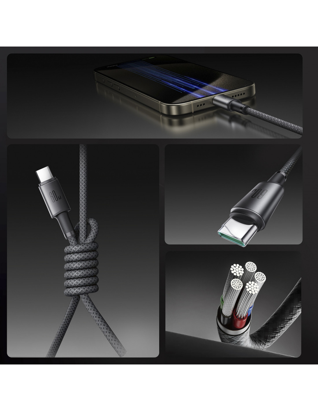 - - Greitas įkrovimas: palaiko iki 60 W galią, kad efektyviai įkrautų jūsų įrenginius,