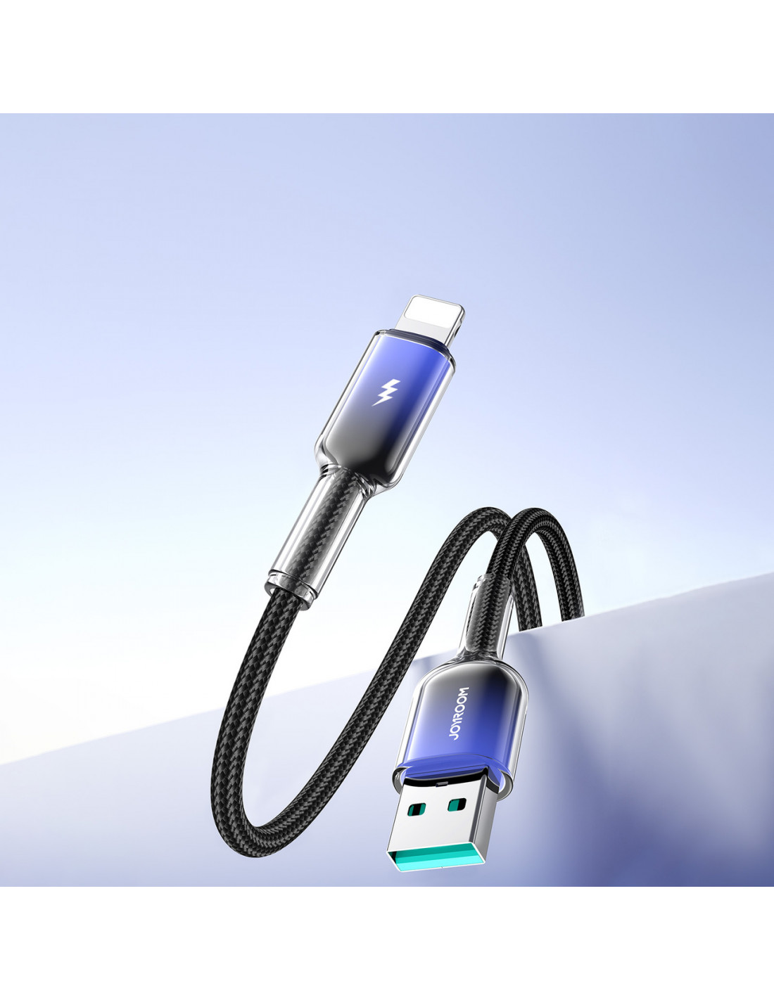 „Joyroom S-A42 Crystal-Clear“ serijos laidas užtikrina patikimą ir greitą įkrovimą. Šis unikalus 1,2 metro laidas pasižymi patvarumu, funkcionalumu ir elegantišku dizainu. Pagamintas iš aukščiausios kokybės medžiagų , tokių kaip pintas nailonas ir ugniai atsparus plastikas, jis garantuoja saugumą ir atsparumą kasdieniam naudojimui. Duomenų perdavimo greitis iki 480 Mbps, o įkrovimo galia iki 3 A , todėl jis idealiai tinka įrenginiams įkrauti ir sinchronizuoti. Antioksidantinis kištukas užtikrina patvarumą net po tūkstančių naudojimų, o platus suderinamumas daro jį universaliu sprendimu daugeliui įrenginių.