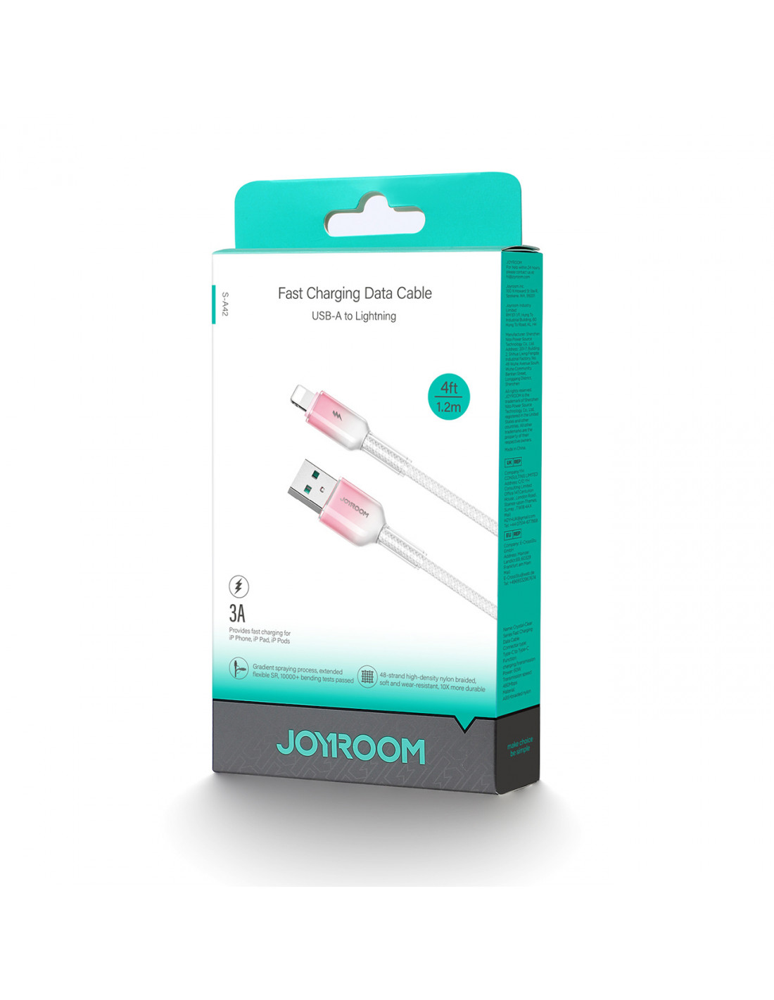 „Joyroom S-A42 Crystal-Clear“ serijos laidas užtikrina patikimą ir greitą įkrovimą. Šis unikalus 1,2 metro laidas pasižymi patvarumu, funkcionalumu ir elegantišku dizainu. Pagamintas iš aukščiausios kokybės medžiagų , tokių kaip pintas nailonas ir ugniai atsparus plastikas, jis garantuoja saugumą ir atsparumą kasdieniam naudojimui. Duomenų perdavimo greitis iki 480 Mbps, o įkrovimo galia iki 3 A , todėl jis idealiai tinka įrenginiams įkrauti ir sinchronizuoti. Antioksidantinis kištukas užtikrina patvarumą net po tūkstančių naudojimų, o platus suderinamumas daro jį universaliu sprendimu daugeliui įrenginių.