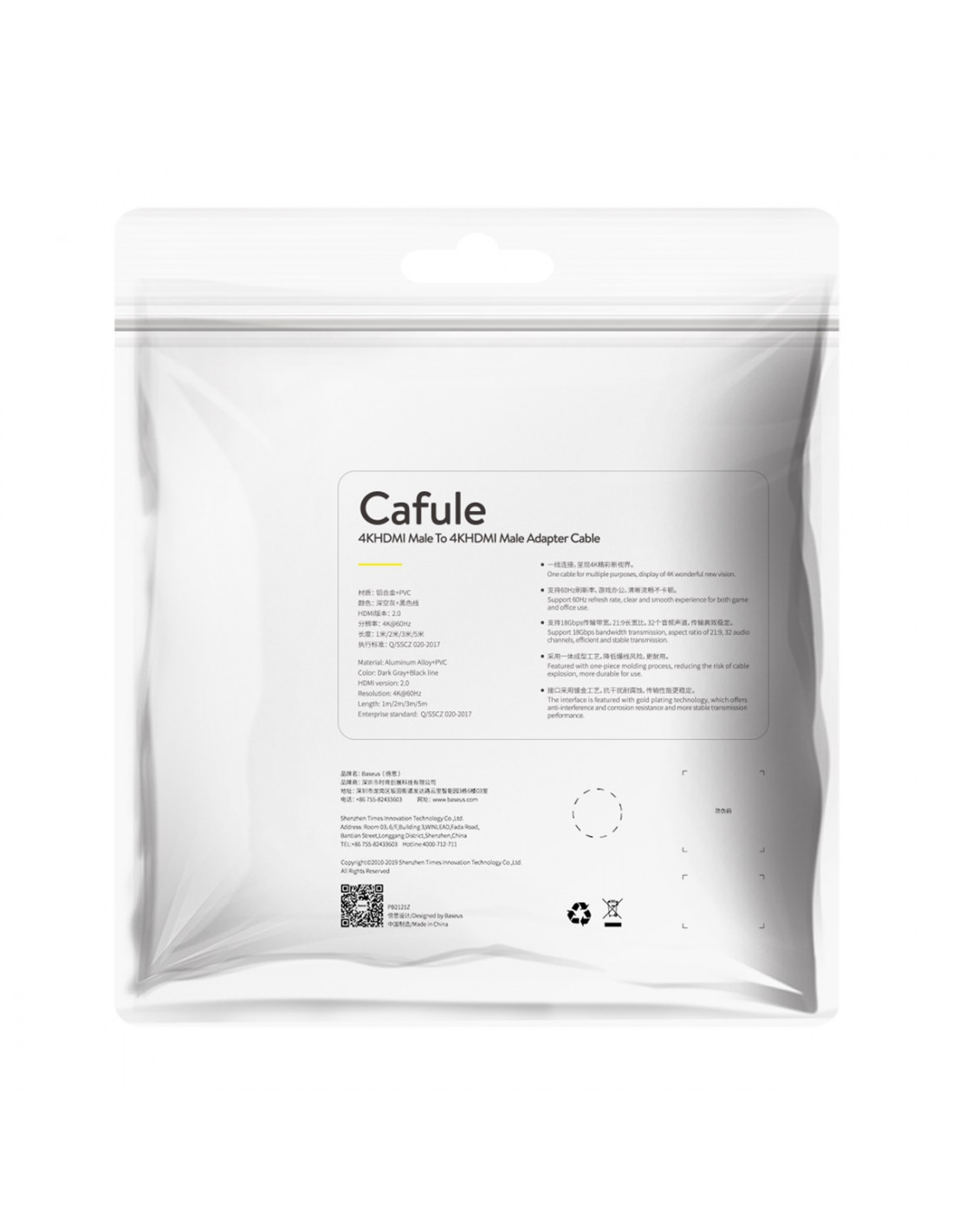 „Baseus Cafule“ HDMI kabelis palaiko 18 Gbps pralaidumą, užtikrindamas stabilų ir neprarandantį perdavimą. Dėl HDMI 2.0 standarto palaikymo jis siūlo 21:9 formato santykį ir iki 32 garso kanalų. Tai reiškia, kad kiekviena jungtis – nesvarbu, ar tai būtų konsolė, kompiuteris, ar projektorius – veiks efektyviai ir be trukdžių.