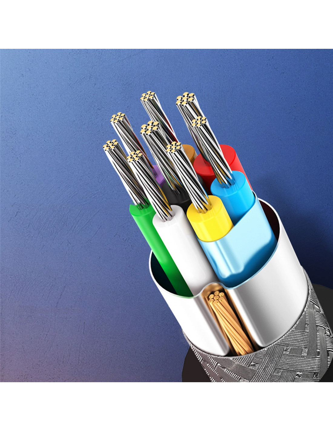 - - Tvirta konstrukcija apsaugo nuo mechaninių pažeidimų. Daugkartinis ekranavimas ir 28+24 AWG laidai užtikrina kabelio ilgaamžiškumą.