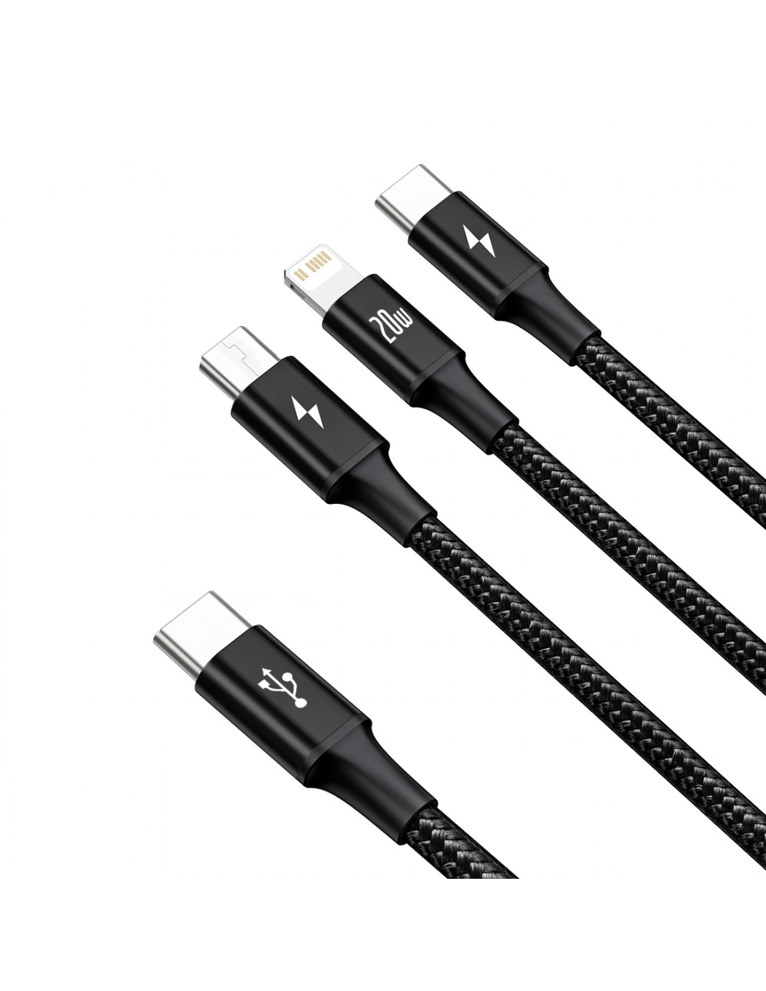 3in1 laidas USB-C - USB-C / iPhone Lightning / microUSB 20W PD 1.5m - juodas