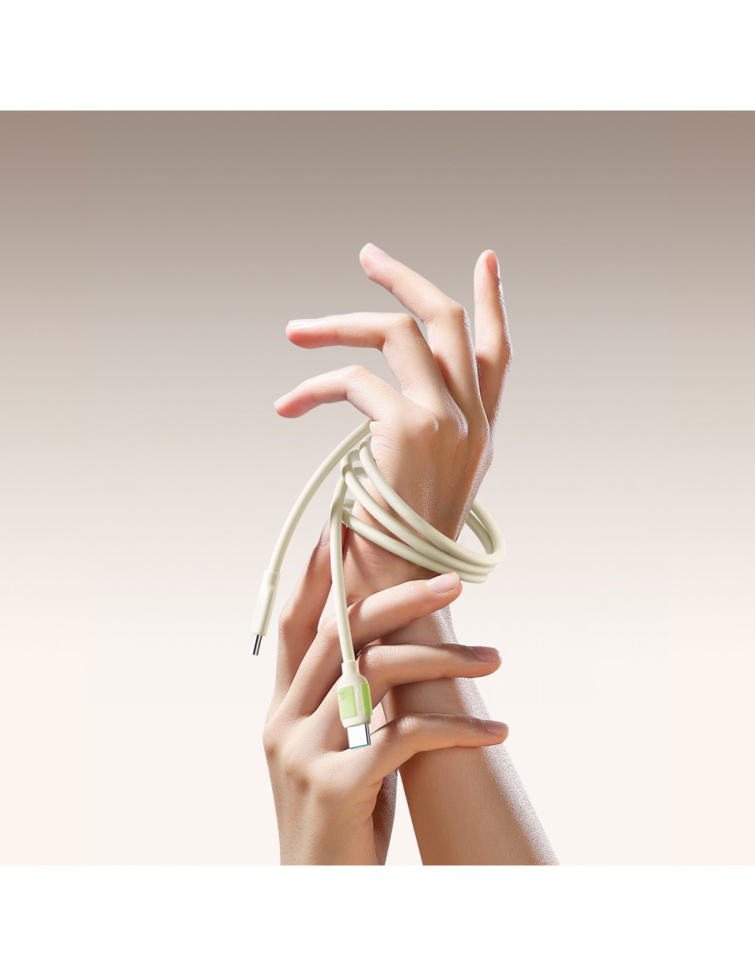 - - USB-C laidas - USB-C su fluorescenciniu antgaliu 60W 1.2m - smėlio spalvos