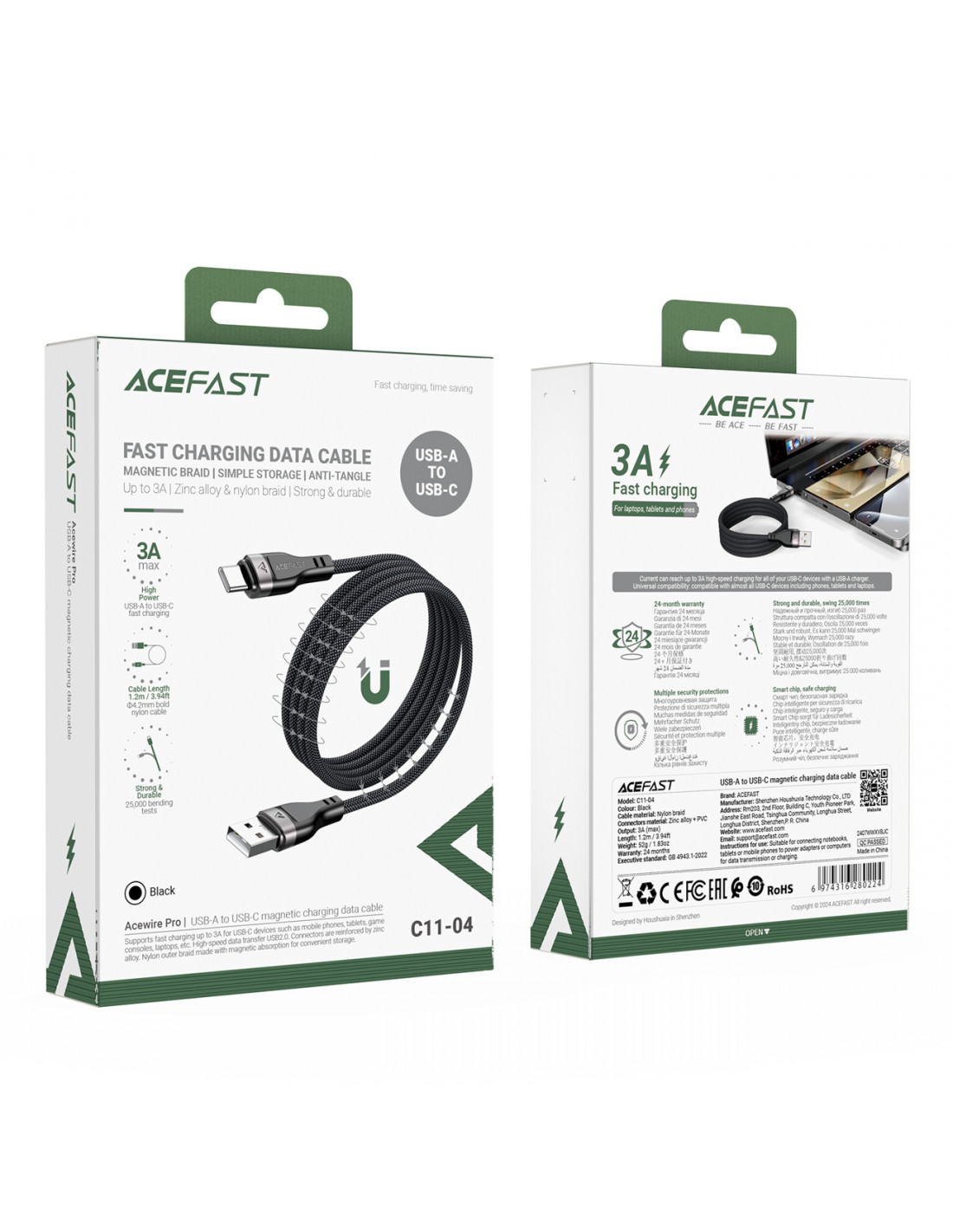 „Acefast C11-04“ laidas palaiko iki 3 A srovę, todėl jį galima greitai įkrauti. Tai užtikrina, kad jūsų išmanusis telefonas, planšetinis kompiuteris ar kiti USB-C įrenginiai visada bus paruošti naudoti.