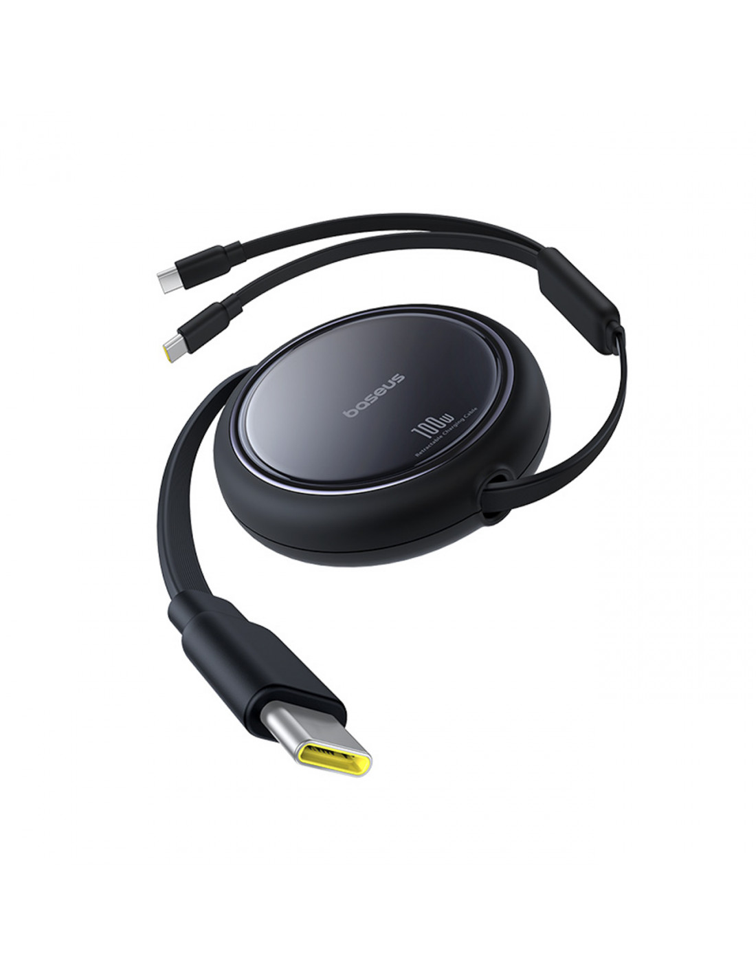 - - Ištraukiamas USB-C laidas - 2 x USB-C „Bright Mirror“ serijos 100 W 1 m - juodas