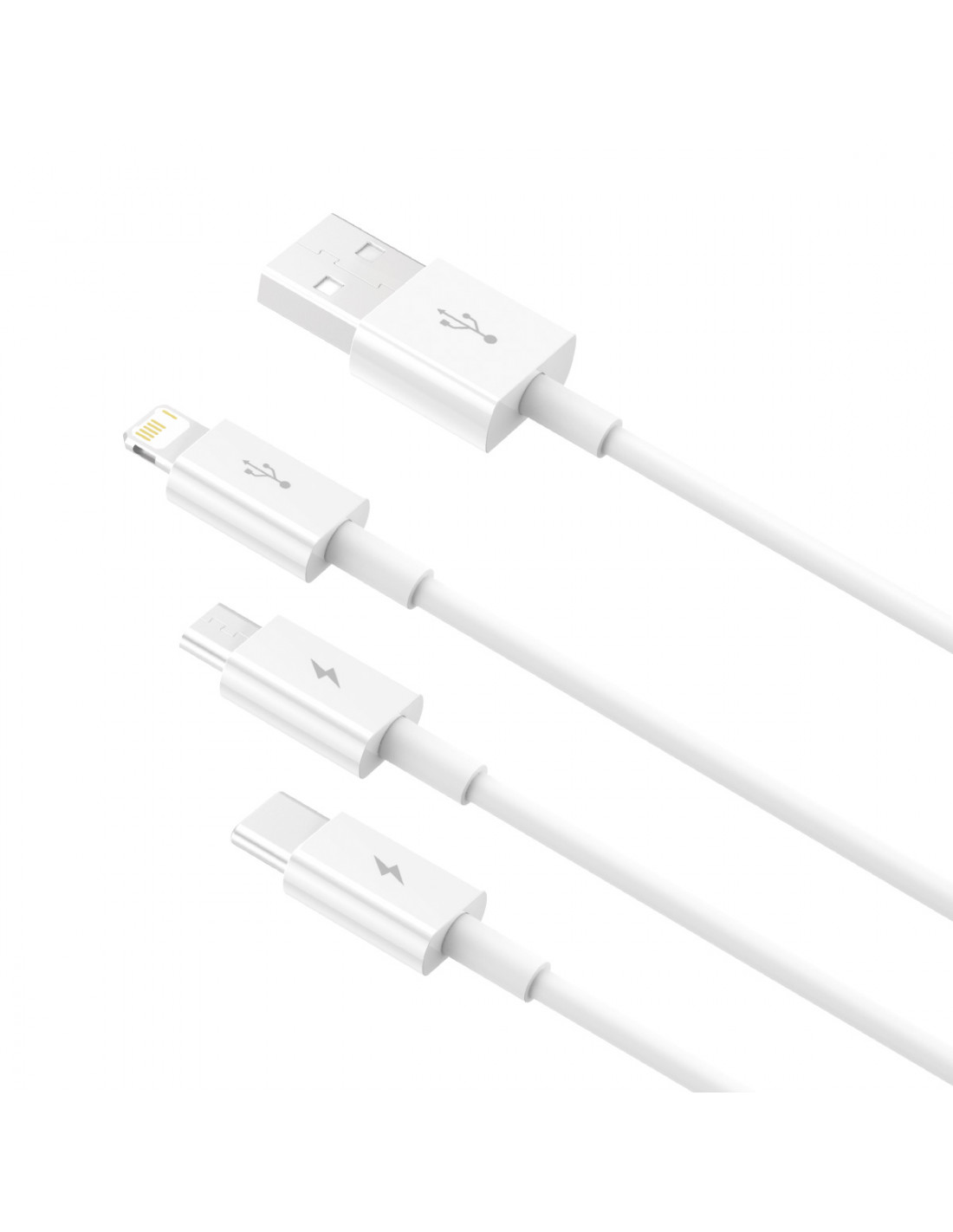 - - 3in1 laidas „Superior Series USB-A“ - USB-C / iPhone „Lightning“ / micro USB 3.5A 0.5m - baltas