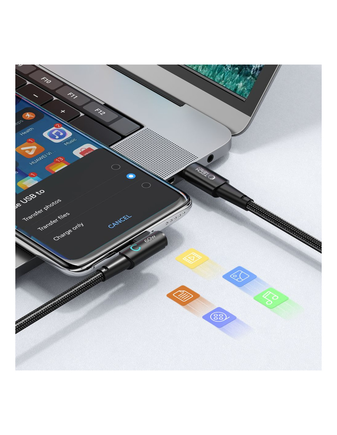 „Tech-Protect Ultraboost „L““ – tai novatoriškas USB-C–USB-C laidas , skirtas saugiam įkrovimui ir greitam duomenų perdavimui. Šis laidas pasižymi unikaliu dizainu, idealiai tinkantis vartotojams, kurie vertina ne tik našumą, bet ir patogumą. „Ultraboost“ turi 90 laipsnių kampinę jungtį, kuri leidžia ergonomiškiau ir patogiau prijungti įrenginį. Tai sumažina paties laido nusidėvėjimą, užtikrina patvarumą ir ilgesnį tarnavimo laiką. Laidas pasižymi dideliu našumu – jis palaiko iki 60 W / 6 A įkrovimo greitį ir greitą duomenų perdavimą iki 480 Mbps. Tai idealus sprendimas tiems, kuriems reikia ne tik greito įkrovimo, bet ir greito failų perdavimo bei duomenų sinchronizavimo tarp įrenginių. Laido pynė pagaminta iš nailono, kuris suteikia patvarumo ir atsparumo mechaniniams pažeidimams. Be to, laidas turi aliuminio korpusą, praturtintą patvariomis pynėmis.
