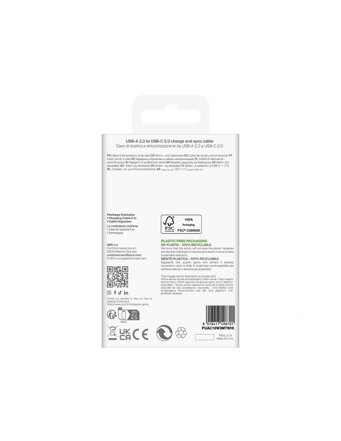„Puro TPE 10W“ USB-A–USB-C laidas, kurio ilgis yra 3 metrai , atitinka vartotojų, vertinančių laisvę, patikimumą ir aukštą kokybę, poreikius. Turėdamas 12 W galią ir universalią USB-C jungtį, šis laidas puikiai tinka šiuolaikiniams išmaniesiems telefonams, „iPad“ ir „MacBook“ planšetiniams kompiuteriams. Ilgas laidas leidžia patogiai naudoti įrenginius net ir dideliuose kambariuose – be apribojimų. Lanksti TPE konstrukcija efektyviai apsaugo laidą nuo susipainiojimo, todėl jis itin praktiškas kasdieniam naudojimui. „Puro“ taip pat atkreipė dėmesį į estetiką – balta spalva ir minimalistinis dizainas puikiai dera prie modernios aplinkos. Rinkitės laidą, kuris derina funkcionalumą su patikimumu ir teikia pirmenybę patogiam įkrovimui bei duomenų perdavimui.