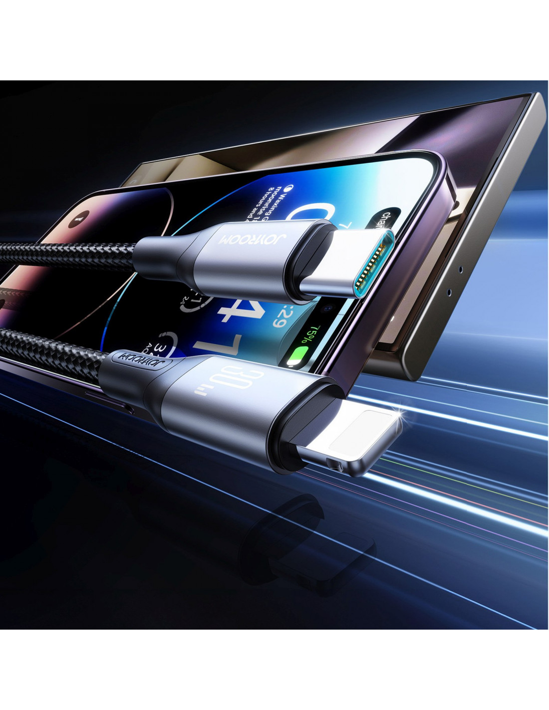 „Joyroom S-A28 Flash“ serijos laidas yra patikimas „Apple“ įrenginiams, palaikantis greitą įkrovimą iki 30 W. Suderinamas su „Power Delivery“ technologija, jis efektyviai įkrauna „iPhone“, „iPad“ ir kitus suderinamus įrenginius. Duomenų perdavimo greitis iki 480 Mbps leidžia patogiai perkelti failus, o aliuminio jungtys ir pintas nailono apvalkalas užtikrina ilgą tarnavimo laiką. 2 m ilgis suteikia laisvę naudoti telefoną jį kraunant namuose, biure ar kelyje.