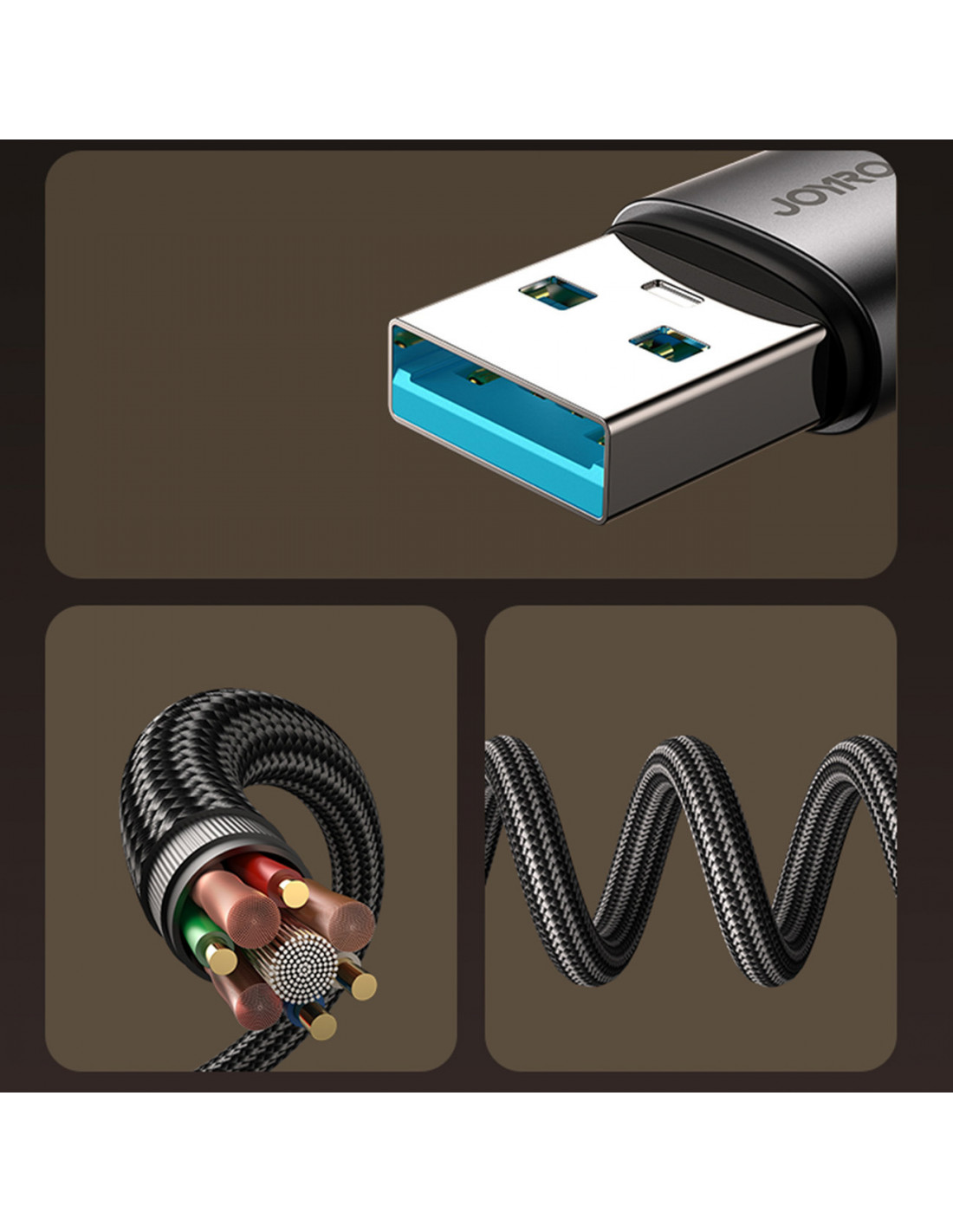 „Joyroom S-A56“ iš „EnjoyX“ serijos yra patikimas 1,2 m ilgio USB-A–USB-C laidas , kuris pasižymi paprastu naudojimu ir išskirtiniu patvarumu. 90° kampu pakreiptas galiukas leidžia daug patogiau naudoti telefoną ar planšetinį kompiuterį įkrovimo metu – idealus pasirinkimas žaidimams, filmams ir vaizdo skambučiams. Laidas palaiko greitą įkrovimą iki 3 A ir duomenų perdavimą iki 480 Mbps. Patvarus nailono pynimas, aliuminio apdaila ir sustiprintos jungtys užtikrina ilgaamžiškumą – laidas išlaikė daugiau nei 10 000 įdėjimo ir išėmimo bandymų. Šis priedas skirtas intensyviam, kasdieniam naudojimui.