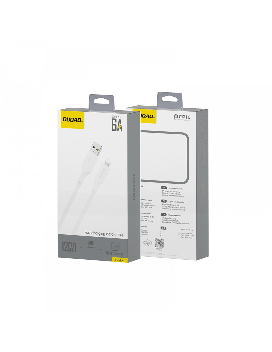yra įkrovimo ir duomenų kabelis su USB-A ir „Lightning“ jungtimis , palaikantis iki 6 A srovę . Tvirta konstrukcija ir PVC danga užtikrina atsparumą kasdieniam naudojimui ir ilgą tarnavimo laiką. Kabelis leidžia greitai ir stabiliai įkrauti „Apple“ įrenginius ir saugiai perduoti duomenis. 1,2 m ilgio kabelis yra patogus kasdieniam naudojimui namuose, biure ar kelyje. Balta spalva suteikia jam elegantišką ir universalų vaizdą.