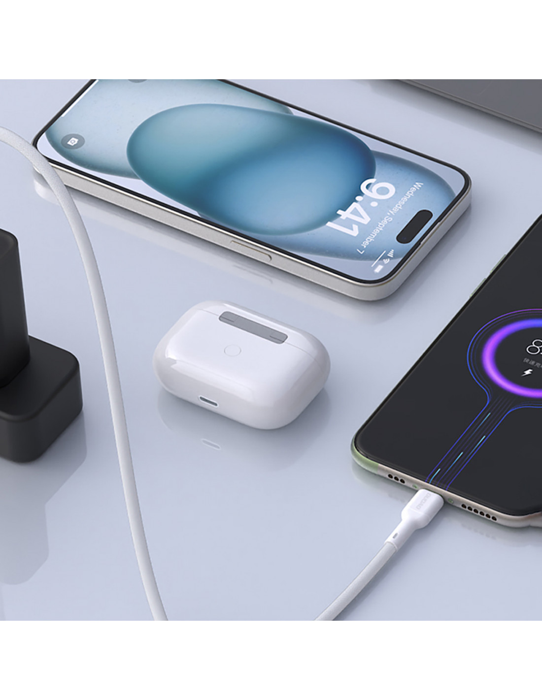- - Dėklo suderinamumas: optimizuotas kištuko dydis leidžia įkrauti telefoną nenuimant dėklo.