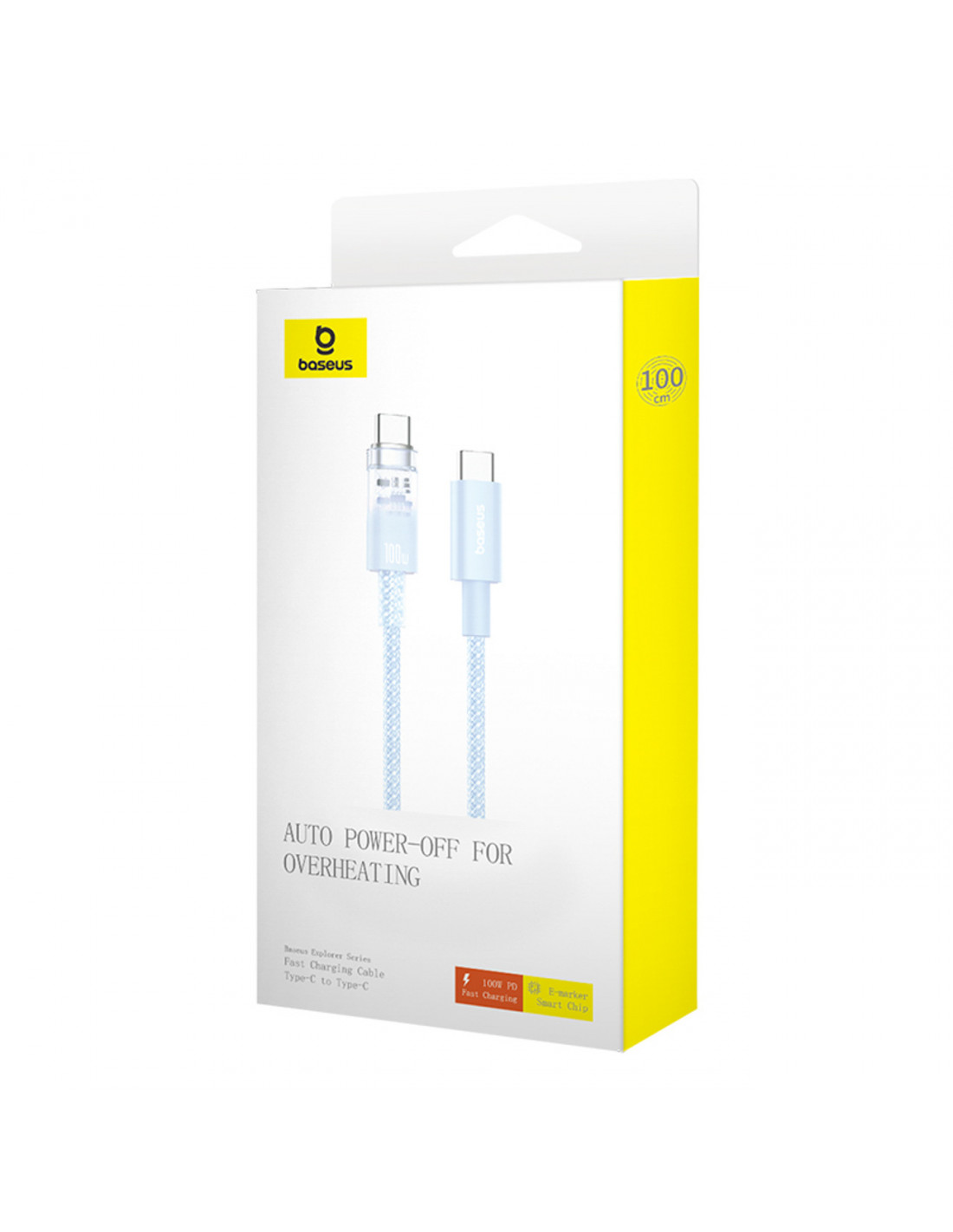 „Baseus Explorer 100W“ – tai naujos kartos laidas, kuris sujungia žaibiško įkrovimo ir aktyvios temperatūros apsaugos funkcijas. Dėl išmaniųjų lustų ir jutiklio su LED indikatoriumi jis realiuoju laiku stebi šilumos lygį ir automatiškai išjungia maitinimą perkaitimo atveju. Jis palaiko 100 W galią, todėl galima greitai įkrauti nešiojamuosius kompiuterius, planšetinius kompiuterius ir išmaniuosius telefonus. Storas 6 laidų varinis šerdis ir ekranavimas užtikrina maitinimo stabilumą, o E-markerio lustas optimizuoja įtampą ir srovę. Laidas yra atsparus lenkimui, o skaidrios jungtys su gradiento apdaila suteikia jam futuristinę išvaizdą. Laidas taip pat palaiko iki 480 Mbps duomenų perdavimo greitį ir yra su „Velcro“ juosta laidų tvarkymui.
