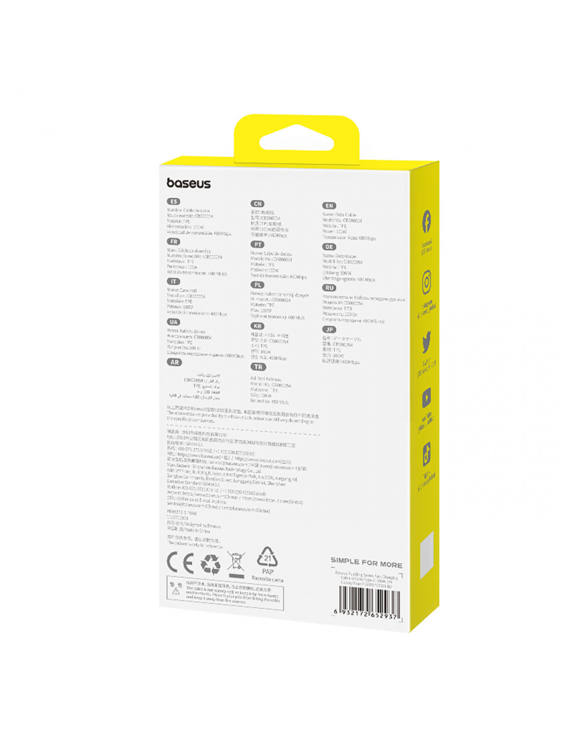 „Baseus Pudding 100W“ – tai laidas, kuris apjungia greitį, patvarumą ir naudojimo patogumą. Jis leidžia itin greitai įkrauti įrenginius iki 100 W (6 A) galia ir visiškai palaiko „Huawei“ bei „Honor“ greito įkrovimo technologijas. Lanksti TPE danga yra atspari lenkimui, nešvarumams ir susivėlimams – išbandyta daugiau nei 20 000 ciklų . Storesnė varinė šerdis ir įrenginio atpažinimo lustas užtikrina saugų ir stabilų įkrovimą. Palaikančio įkrovimo technologija automatiškai sumažina galią, kai akumuliatorius visiškai įkrautas, apsaugodama jį nuo perkaitimo. Laidas taip pat palaiko iki 480 Mbps duomenų perdavimo spartą ir yra 2 m ilgio . Pridedamas lipdukas, kad būtų lengva laikyti.