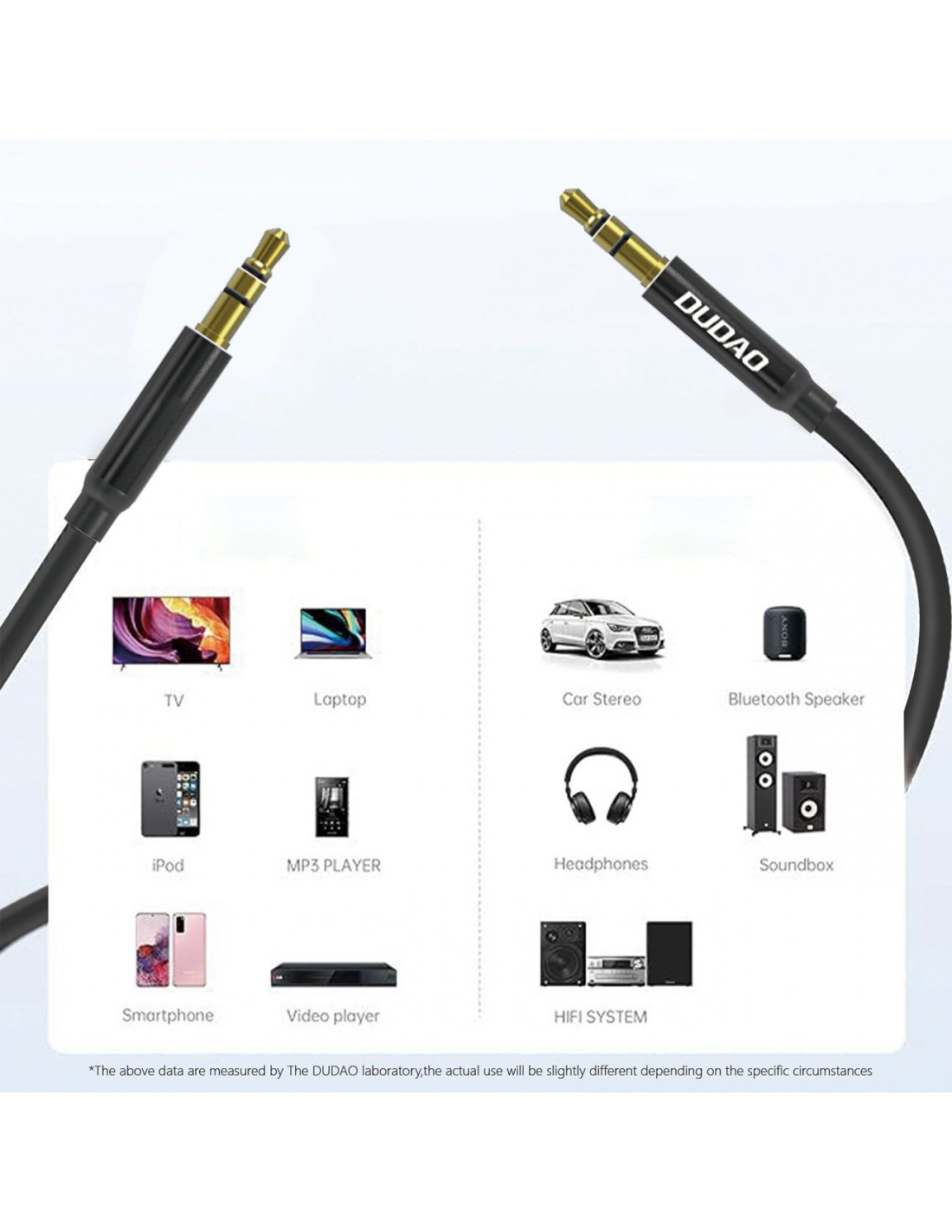 „Dudao L12S AUX“ laidas yra praktiškas priedas, leidžiantis mėgautis muzika iš telefono, planšetinio kompiuterio ar kompiuterio per namų ar automobilio garso sistemą. Dėl 3,5 mm mini lizdo jungčių galite jį prijungti per kelias sekundes ir akimirksniu klausytis mėgstamų dainų geresne kokybe nei per mobiliajame įrenginyje integruotą garsiakalbį. Tvirta konstrukcija garantuoja ilgalaikį naudojimą. Laidas padengtas patvariu gumos izoliaciniu sluoksniu, o jungtys turi aliuminio korpusus. Tai paprastas, patikimas ir patogus sprendimas visiems, kurie mėgsta klausytis muzikos be apribojimų.