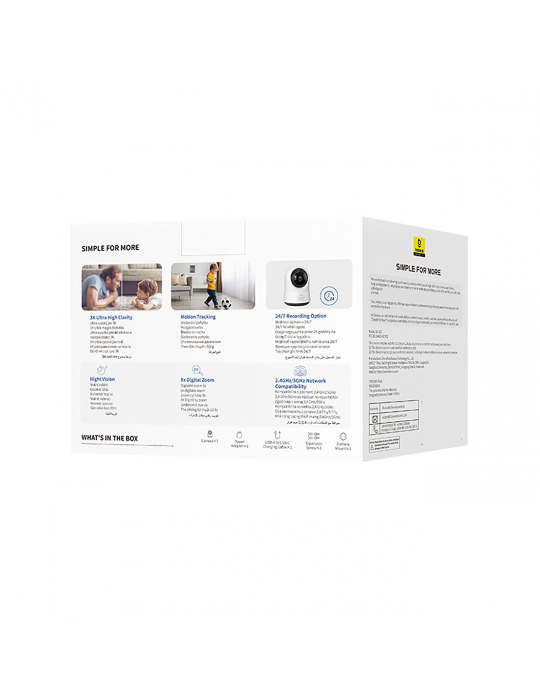 „Baseus Security P1 Pro 3K“ (ES versija) – tai pažangi stebėjimo kamera, kurioje derinama aukšta vaizdo kokybė su išmaniomis saugumo funkcijomis. Įspūdinga 2880 × 1620 pikselių raiška fiksuoja kiekvieną detalę – tiek dieną, tiek naktį, dėka įmontuotų IR šviesos diodų . 8 kartų skaitmeninis priartinimas leidžia priartinti vaizdą neprarandant fokusavimo, o tai neįkainojama stebint vaikus, augintinius ar namų įėjimus. Integruotas dirbtiniu intelektu pagrįstas žmonių ir kūdikių verksmo aptikimas akimirksniu įspėja apie galimas grėsmes. Kamera palaiko tiek 2,4 GHz, tiek 5 GHz „Wi-Fi“ , užtikrindama greitą ir stabilų ryšį, o integracija su „Alexa“ ir „Google Home“ balso asistentais daro ją itin patogią. Tai patikimas įrankis jūsų namams, butui, biurui ar vaikų kambariui apsaugoti – dabar su visiška kontrole jūsų rankose.