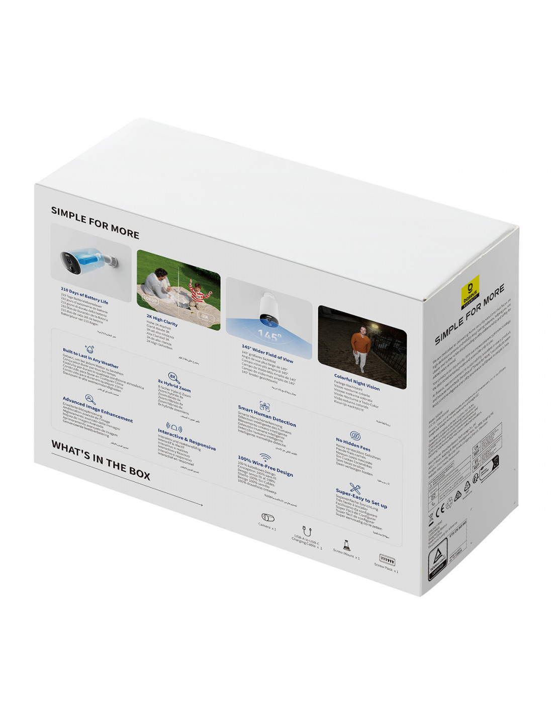 Apsaugokite savo namus neįtikėtinu tikslumu su „Baseus Security B1“ kamera – belaidė, atspari oro sąlygoms ir paruošta darbui ištisus metus. Ji įrašo 2K raiška , užtikrindama puikius kadrus net iš 8 metrų atstumo – tiek dieną, tiek naktį, dėka spalvoto naktinio režimo ir 100lm prožektoriaus . Turėdama 145° matymo lauką, ji apima visą jūsų teritoriją, pašalindama akląsias zonas. 7800 mAh baterija garantuoja iki 210 dienų veikimo be įkrovimo, o turėdami 8 GB integruotos atminties, galite saugoti įrašus vietoje – be prenumeratos mokesčių. Kamera leidžia tiksliai apibrėžti aktyvumo ir privatumo zonas, o išmanusis aptikimas su realiojo laiko pranešimais informuoja tik apie tai, kas išties svarbu. Be to, dvipusis ryšys, TÜV sertifikuotas šifravimas ir paprastas, belaidis montavimas paverčia „B1“ visapusišku sprendimu šiuolaikiniams namams.