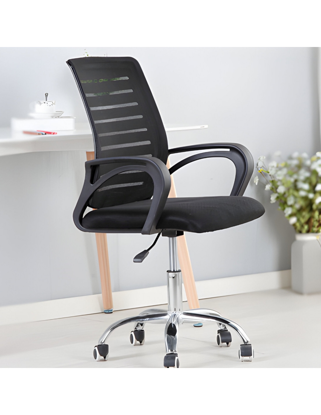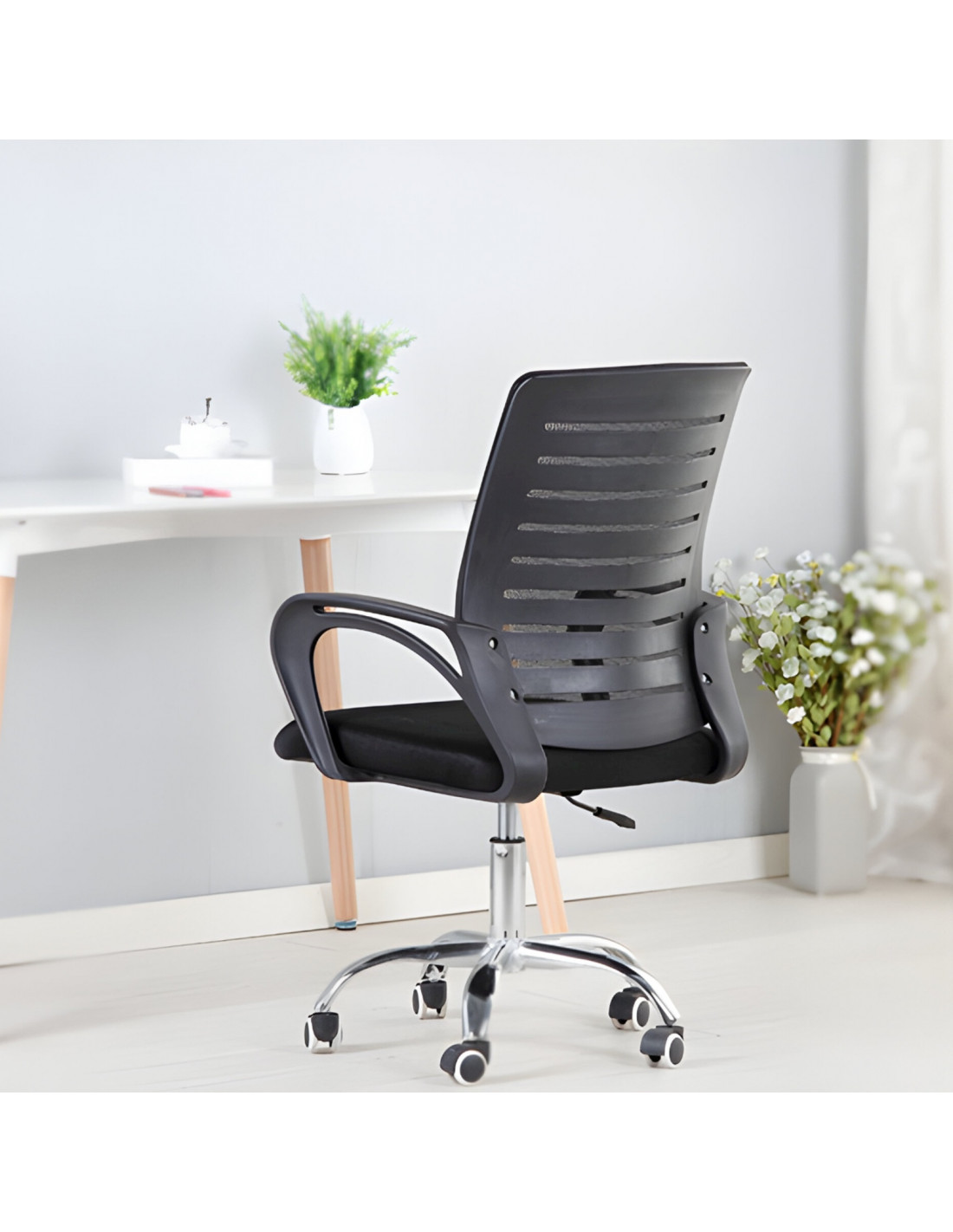 RETOO O236 pasukama biuro kėdė yra ergonomiška, sukurta atsižvelgiant į patogumą ir ilgaamžiškumą. Dėl ventiliuojamos mikro tinklelio atlošo ir minkštos, kontūruotos sėdynės, pagamintos iš membraninio audinio, ji užtikrina tinkamą oro cirkuliaciją ir komfortą ilgų darbo valandų metu. Kėdė turi reguliuojamo aukščio sėdynę (42–50 cm), ergonomiškus porankius, chromuotą pagrindą ir nedirginančius ratukus, kad būtų lengva judėti ir apsaugoti grindis. Kėdė gali atlaikyti iki 150 kg apkrovą , o jos kontūruota atlošas padeda išlaikyti taisyklingą laikyseną.