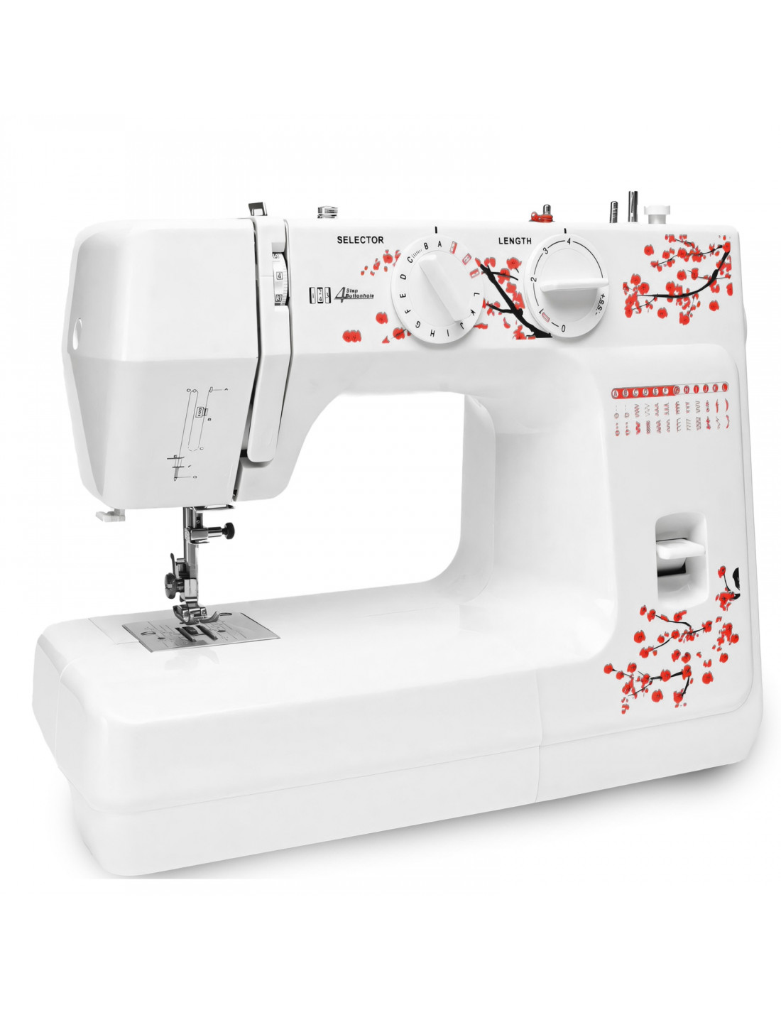 - - Siuvimo funkcijos: siuvinėjimas, apsiuvimas, sagų kilpos, dygsniavimas, klostavimas, kraštų apsiuvimas, aplikacijų siuvimas, taisymas, viršutinės siūlės, dekoratyvinis siuvimas, elastinių medžiagų siuvimas, elastinių juostų siuvimas, užtrauktukų siuvimas, kraštų apdaila, dygsniavimas,