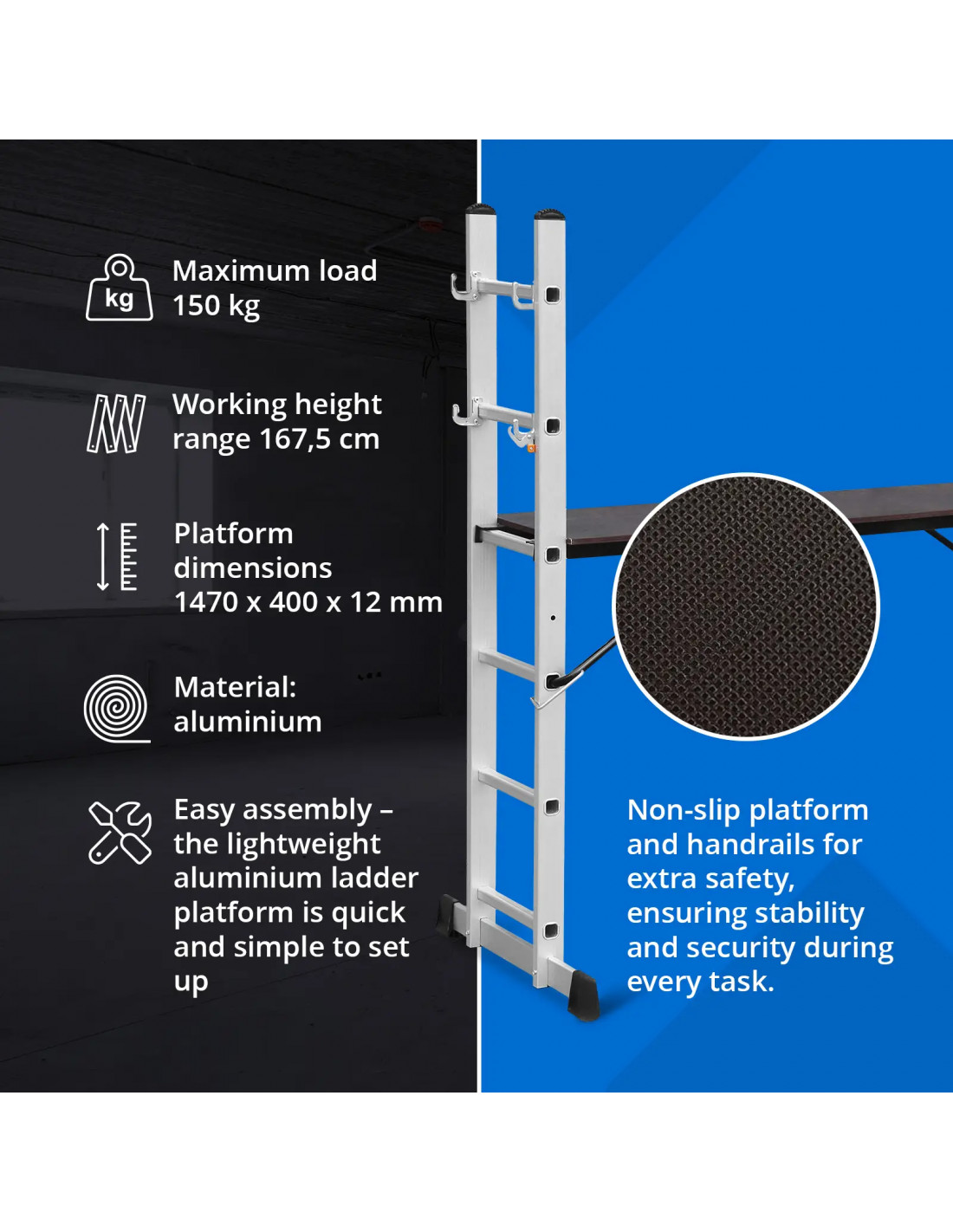 • - Didelė kopėčių pastolių keliamoji galia iki 150 kg garantuoja saugų ir patikimą naudojimą,