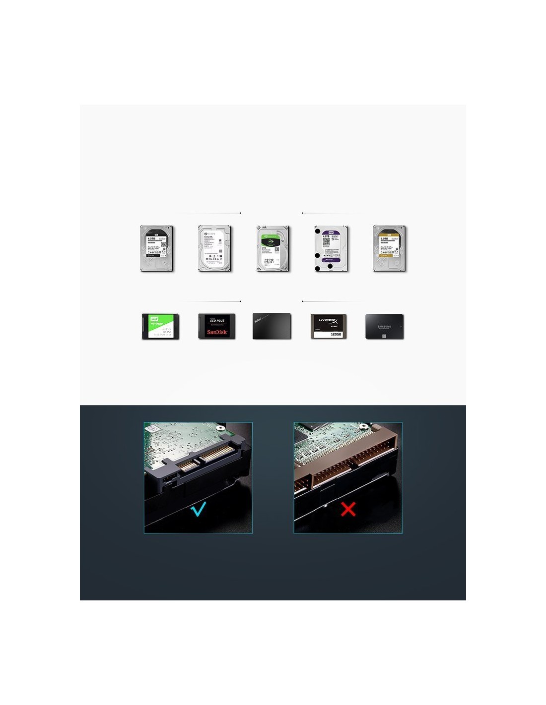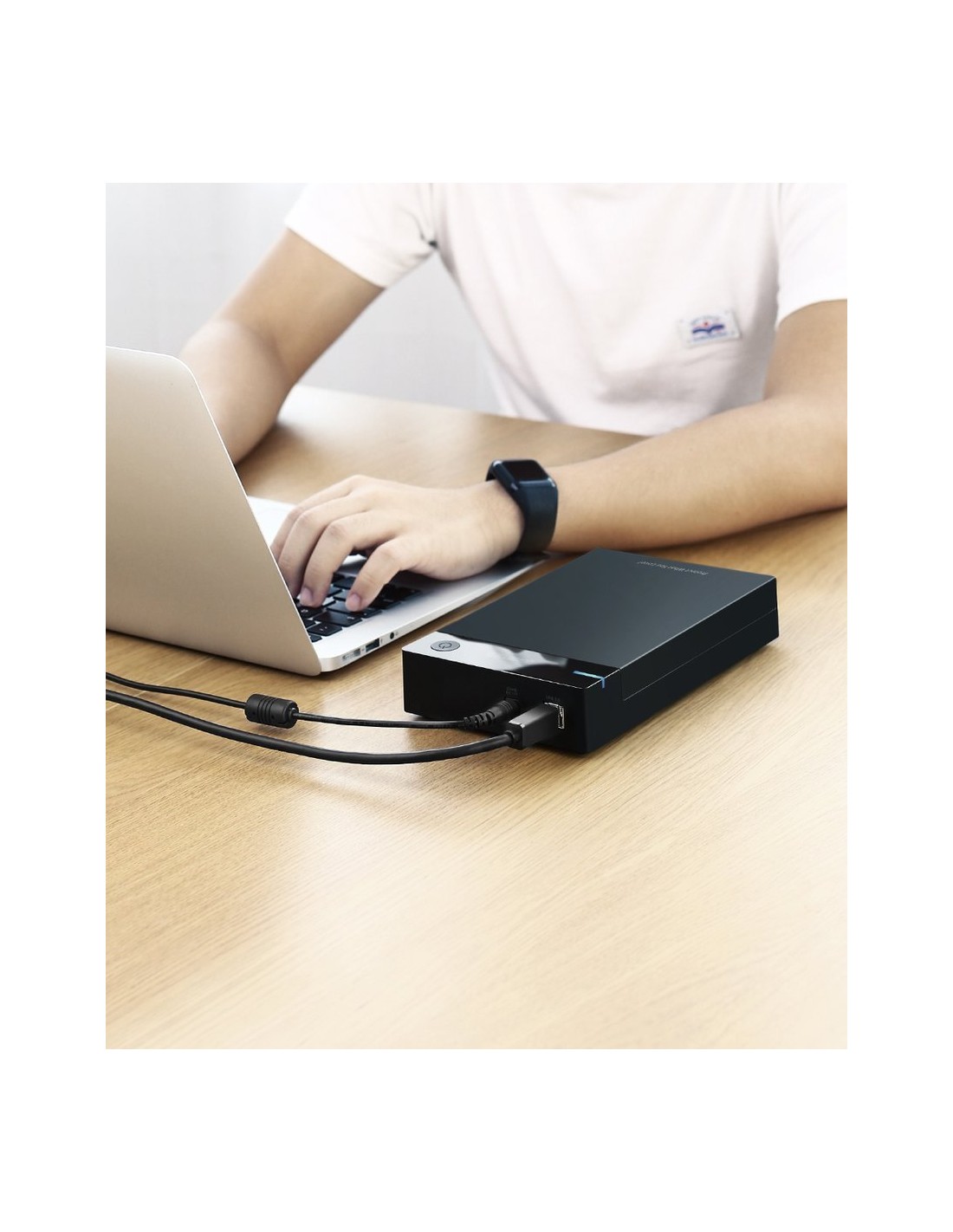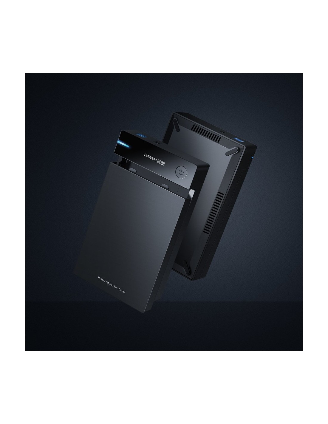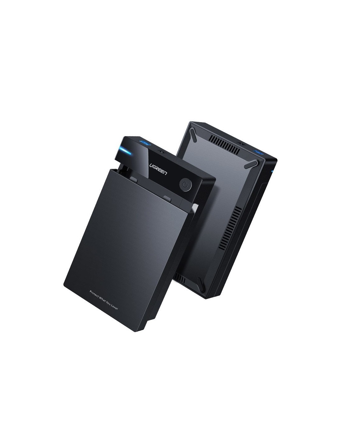 „Ugreen“ prekės ženklo 3,5 colio HDD su SATA sąsaja korpusas. Tai gaminys, kurio pagrindinė užduotis yra apsaugoti diską ir užtikrinti greitą duomenų perdavimą per USB 3.0 prievadą. Kišenė suderinama su Windows, Linux ir Mac OS. Jo dėka galite prijungti 3,5" diską prie kompiuterio, televizoriaus ar žaidimų konsolės. Kišenė maitinama įtrauktu maitinimo šaltiniu.