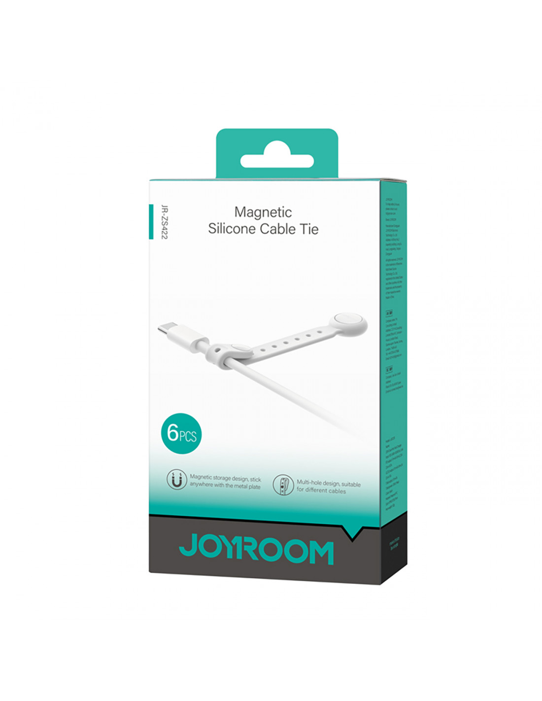 „Joyroom JR-ZS422“ kabelių raišteliai yra funkcionalus aksesuaras, kuris padės jums kartą ir visiems laikams sutvarkyti susivėlusius laidus. Rinkinyje yra šeši lankstūs silikoniniai kabelių raišteliai su įmontuotu magnetu, leidžiančiu juos patogiai pritvirtinti prie metalinių paviršių, tokių kaip stalas, lentyna ar kompiuterio korpusas. Dėl patvarios medžiagos ir išmanaus dizaino juos galima pakartotinai pritvirtinti ir nuimti nepažeidžiant laido. Minimalistinis, baltas dizainas papildo bet kokį interjerą, o sagčių ir skylių sistema užtikrina lengvą reguliavimą ir suderinamumą su įvairaus storio laidais – nuo USB-C laidų iki įkroviklių ir ausinių laidų. Kabelių raišteliai yra kompaktiški, lengvi ir patogūs naudoti net keliaujant.