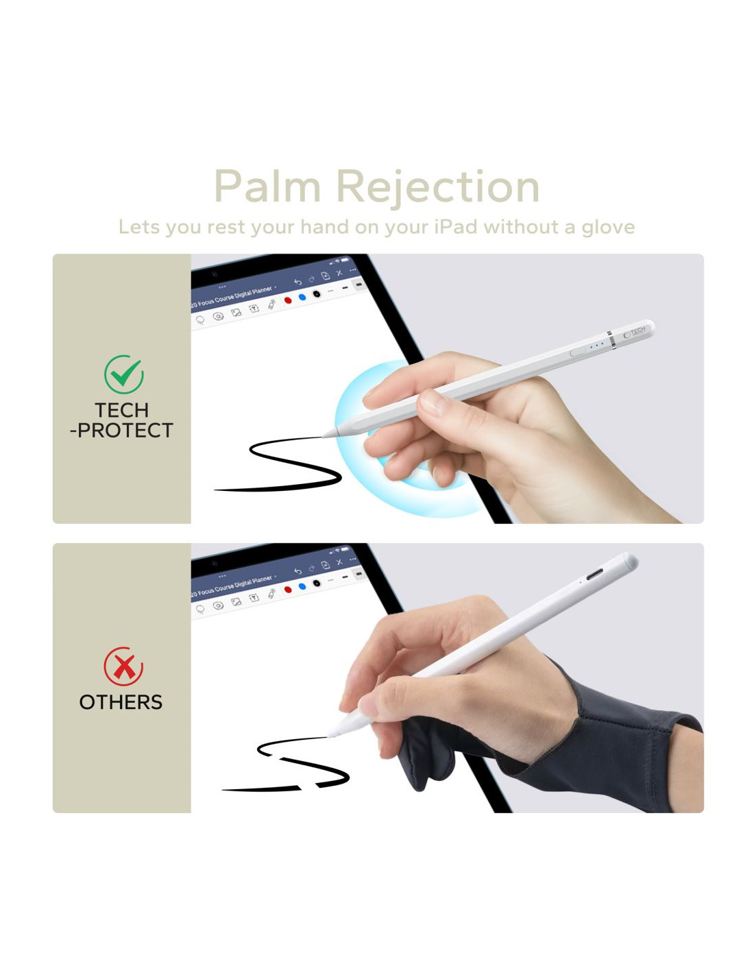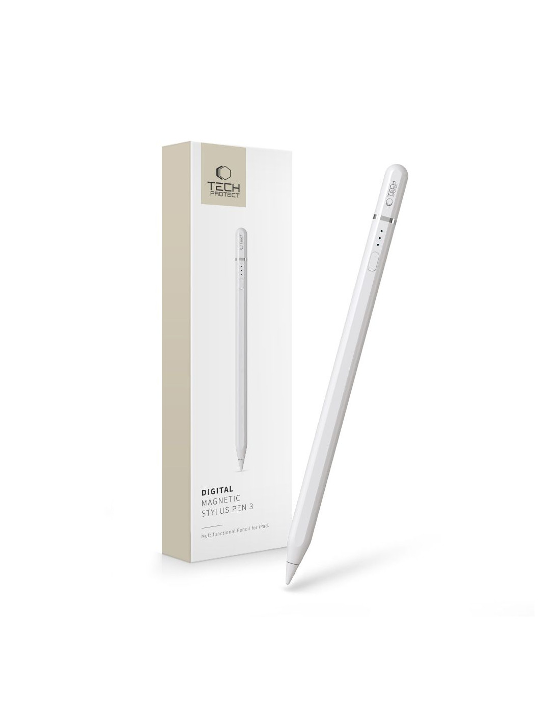 „Tech-Protect Digital Stylus“ yra pažangi grafikos priemonė, leidžianti kurti tikslią grafiką ir piešinius „Apple iPad“. Mažas galiukas ir didelis lietimo jautrumas garantuoja tikslumą piešiant ir apdorojant grafiką. Priedas pasižymi ergonomišku dizainu , kuris sumažina rankų nuovargį ir pagerina komfortą dirbant. Rašiklio viduje yra mažas magnetas, panašus į tą, kuris yra „Apple Pencil“. Jis patogiai pritvirtina rašiklį prie bet kurio „iPad“ su magnetine jungtimi šono. Valdymas paprastas ir intuityvus. Įjunkite ir išjunkite rašiklį paspaudę maitinimo mygtuką. Priedas automatiškai išsijungs po 5 minučių neveiklumo, kad taupytų energiją. Rašiklyje taip pat yra įmontuoti šviesos diodai , rodantys akumuliatoriaus lygį ir įrenginio veikimą. Rašiklis turi būti prijungtas prie „iPad“ per „Bluetooth“. Ši funkcija taip pat leis jums patikrinti rašiklio akumuliatoriaus būseną ir belaidžiu būdu įkrauti priedą indukcinio įkrovimo parinkties dėka, prijungus rašiklį prie magnetinės jungties „iPad“.