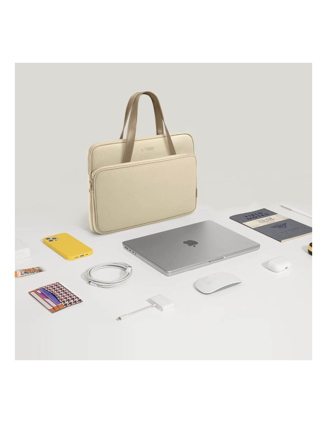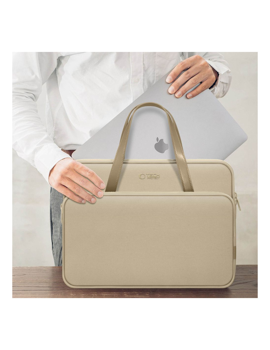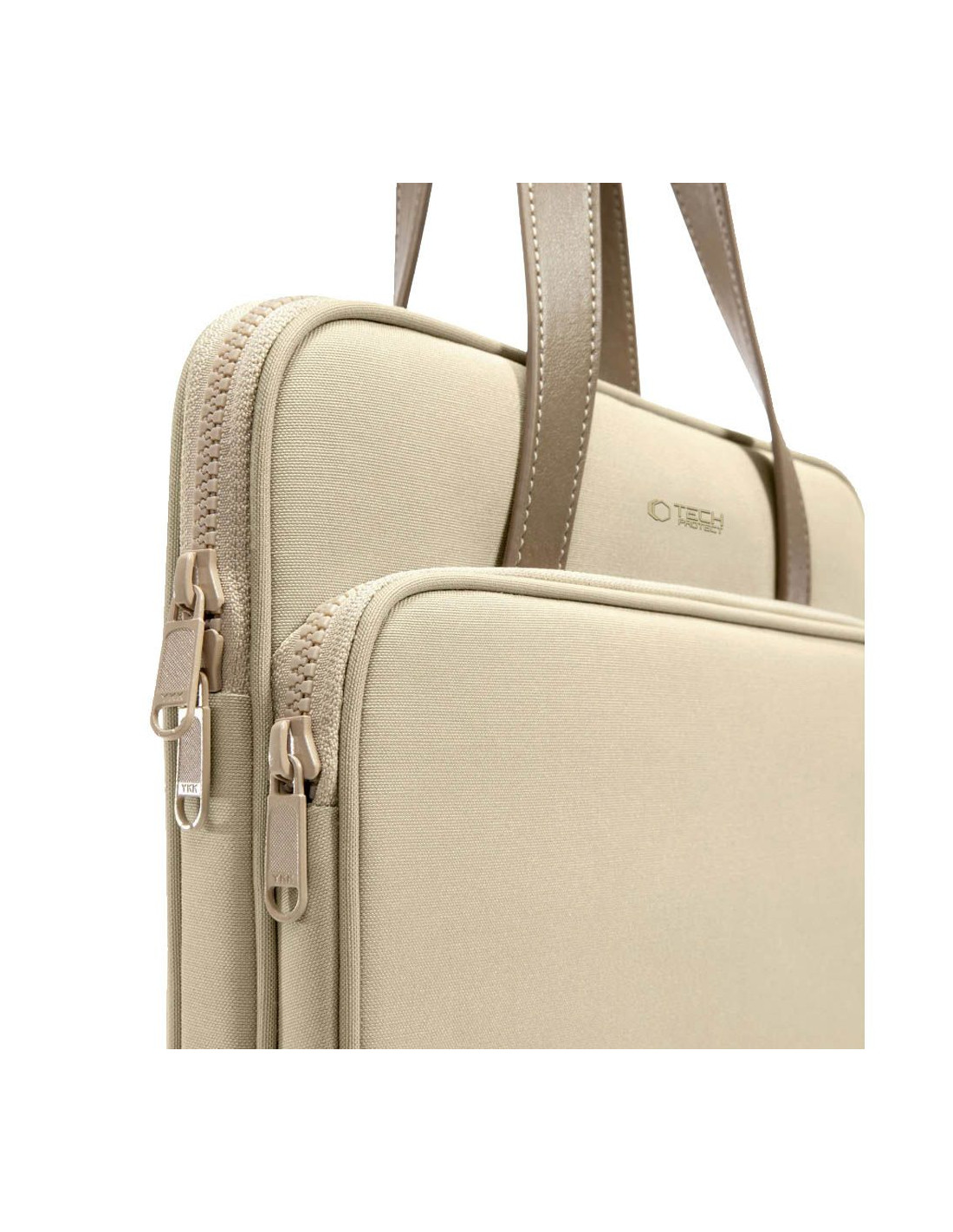 „Tech-Protect“ nešiojimo krepšys – elegantiškas ir funkcionalus sprendimas tiems, kurie ieško patikimos įrangos apsaugos. Dėl nesenstančio dizaino jis puikiai tinka tiek verslo, tiek kasdieniam naudojimui. Dėklas pagamintas iš minkštų, malonių liesti putų, kurios puikiai apsaugo nuo mechaninių pažeidimų. Be to, vandeniui atspari medžiaga efektyviai apsaugo įrenginį nuo drėgmės ir nedidelių purslų. Jo funkcionalumas akivaizdus dėl apgalvoto dviejų atskirų kišenių išdėstymo – vienos skirtos nešiojamajam kompiuteriui, kitos – būtiniausiems priedams. Patogios rankenos, pagamintos iš eko odos, leidžia lengvai nešiotis ir sukuria elegantišką išvaizdą. Papildomas dirželis leidžia jį pritvirtinti prie lagamino rankenos, o tai ypač praktiška keliaujant.