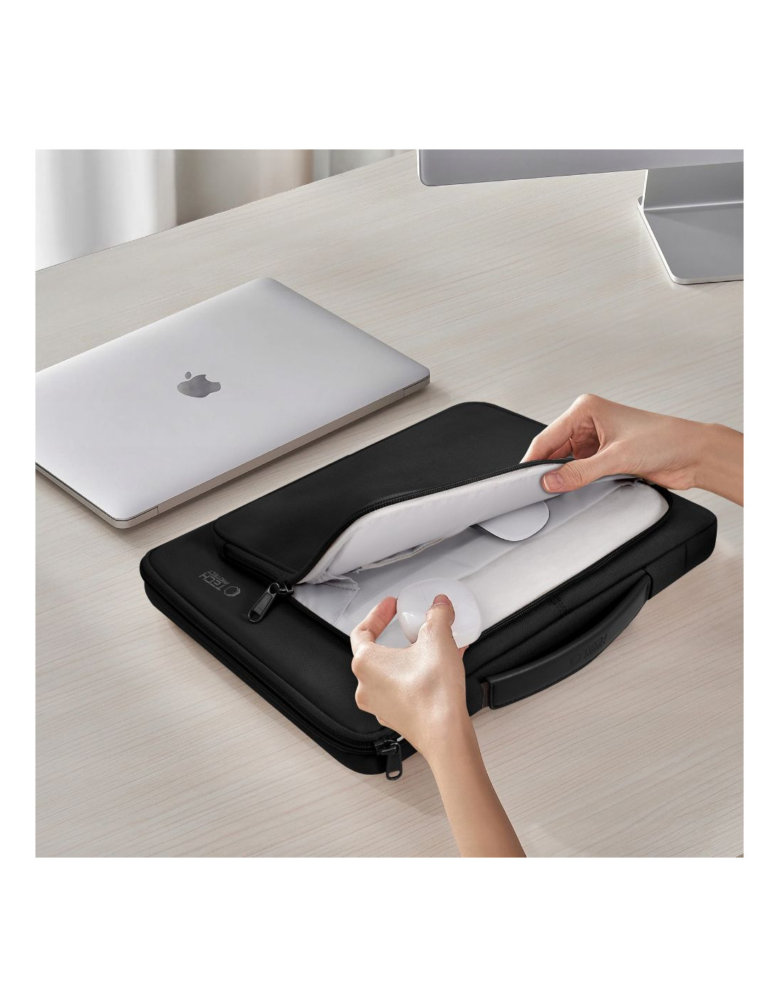 „Tech-Protect Basic Bag“ – stilingas, funkcionalus ir patikimas nešiojamojo kompiuterio krepšys, puikiai derinantis modernų dizainą su praktiškais sprendimais. Ergonomiška rankena ir kompaktiškas dydis leidžia krepšį patogiai nešiotis bet kokioje situacijoje – pakeliui į darbą, mokyklą ar verslo susitikimą. Minkštas, paminkštintas vidus efektyviai apsaugo nešiojamąjį kompiuterį nuo įbrėžimų, smūgių ir pažeidimų, o patvarūs užtrauktukai užtikrina saugumą. Krepšyje telpa nešiojamieji kompiuteriai iki 14 colių įstrižainės, o papildomos kišenės leidžia patogiai laikyti priedus, tokius kaip pelė, įkroviklis ar dokumentai. Minimalistinis, elegantiškas krepšio dizainas puikiai dera tiek prie laisvalaikio, tiek prie formalaus stiliaus. Rinkitės „Tech-Protect Basic Bag“, kad užtikrintumėte geriausią nešiojamojo kompiuterio apsaugą ir komfortą kiekvienoje situacijoje.
