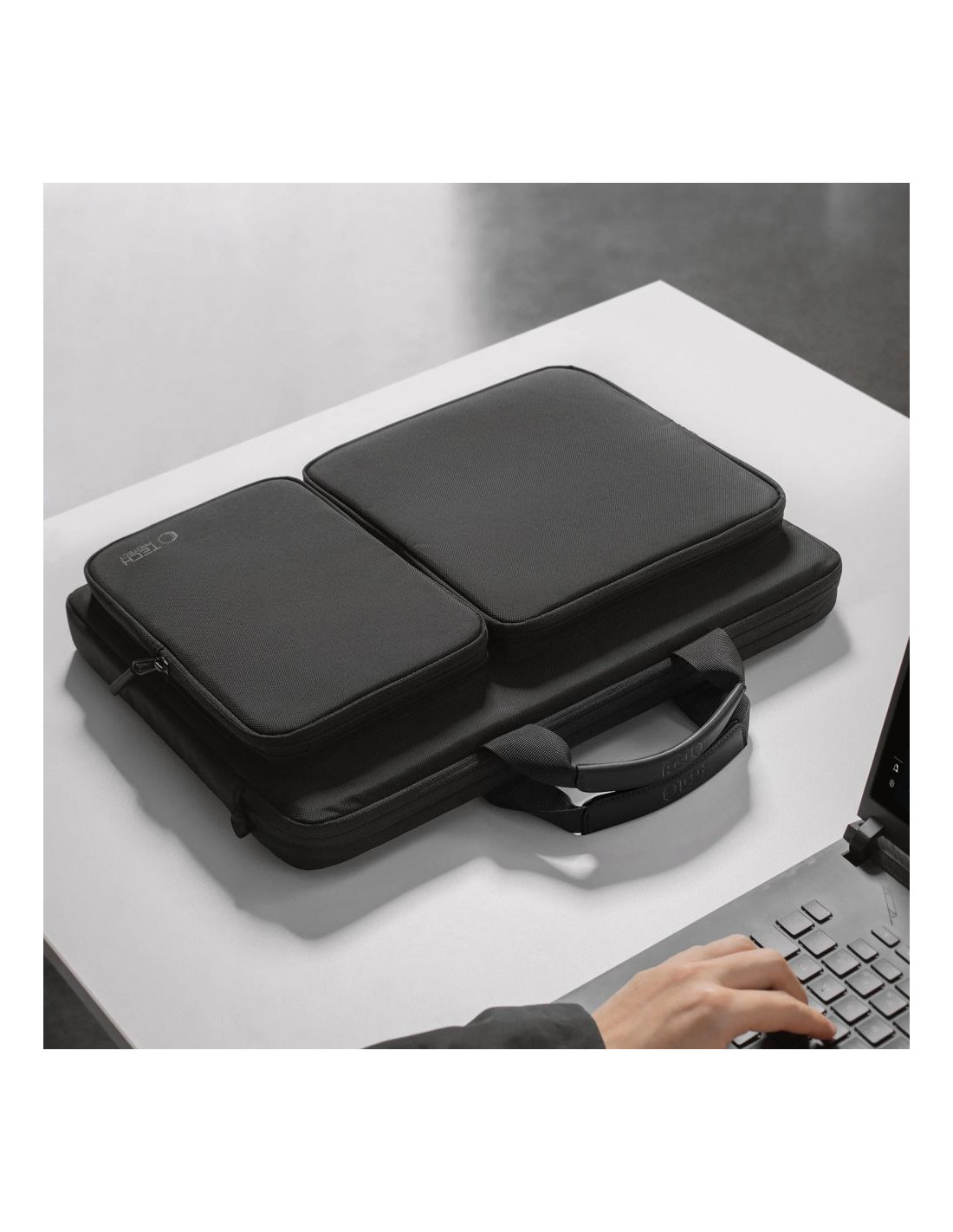 „Tech-Protect Defender“ krepšys – puikus sprendimas tiems, kurie vertina komfortą, stilių ir savo įrangos saugumą. Turėdamas funkcionalų pečių dirželį ir tvirtą rankeną, jis yra universalus ir prisitaiko prie jūsų poreikių. Kruopščiai apgalvotas daiktų laikymo išdėstymas apima keturias praktiškas kišenes : pagrindinį skyrių, pamuštą minkštu pliušu, kuris apsaugo nešiojamąjį kompiuterį nuo įbrėžimų, galinę dokumentų kišenę ir dvi priekines užtraukiamas kišenes, puikiai tinkančias priedams, įkrovikliui ar kitiems smulkiems daiktams. Elegantiškas dizainas ir patvarios medžiagos paverčia krepšį puikiu jūsų kasdienio stiliaus papildymu ir užtikrina patikimumą bet kokioje situacijoje.