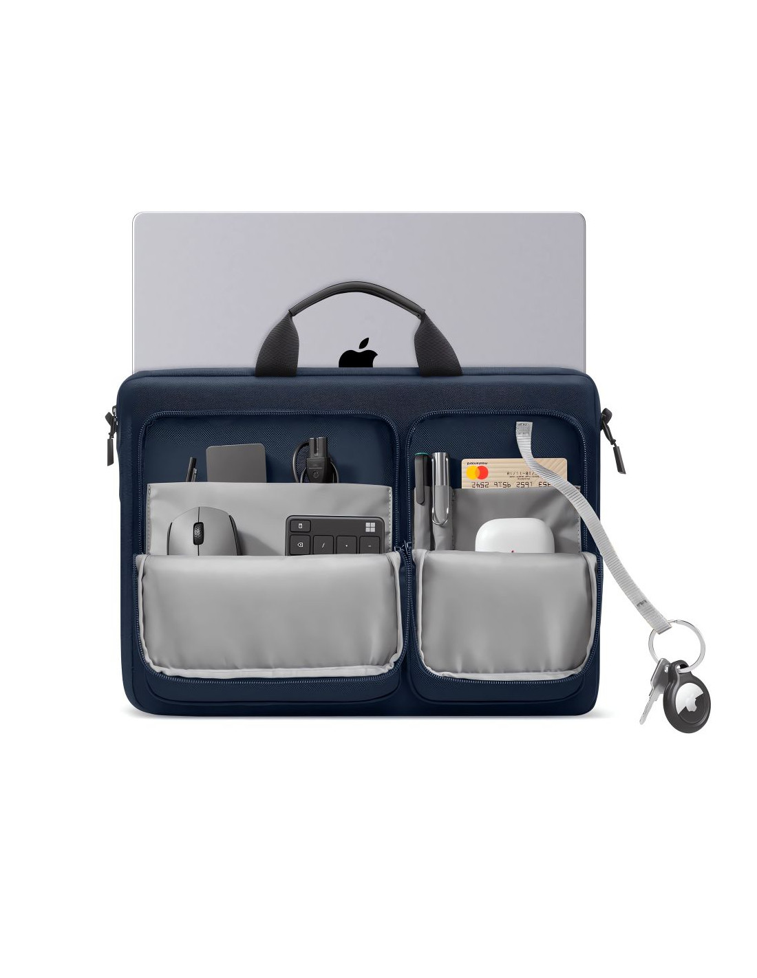 „Tech-Protect Defender“ krepšys – puikus sprendimas tiems, kurie vertina patogumą, stilių ir savo įrangos saugumą. Turėdamas funkcionalų pečių dirželį ir tvirtą rankeną, jis yra universalus ir prisitaiko prie jūsų poreikių. Kruopščiai apgalvotas daiktų laikymo išdėstymas apima keturias praktiškas kišenes : pagrindinį skyrių, pamuštą minkštu pliušu, kuris apsaugo nešiojamąjį kompiuterį nuo įbrėžimų, galinę dokumentų kišenę ir dvi priekines užtraukiamas kišenes, puikiai tinkančias priedams, įkrovikliui ar kitiems smulkiems daiktams. Elegantiškas dizainas ir patvarios medžiagos paverčia krepšį puikiu jūsų kasdienio stiliaus papildymu ir užtikrina patikimumą bet kokioje situacijoje.