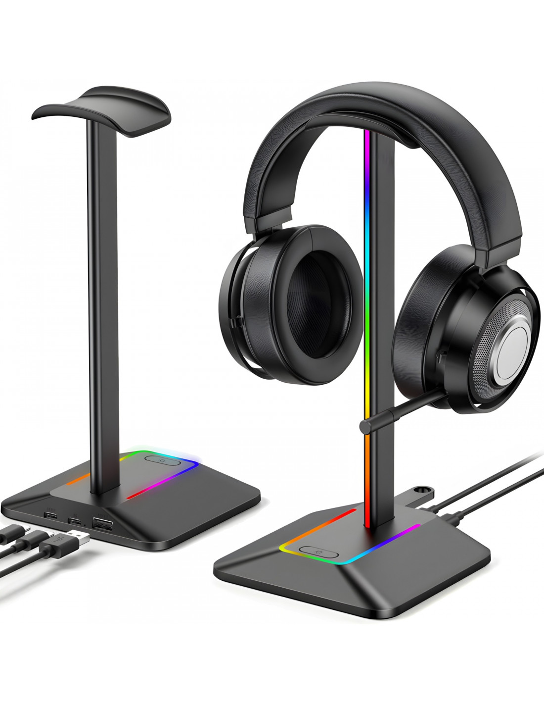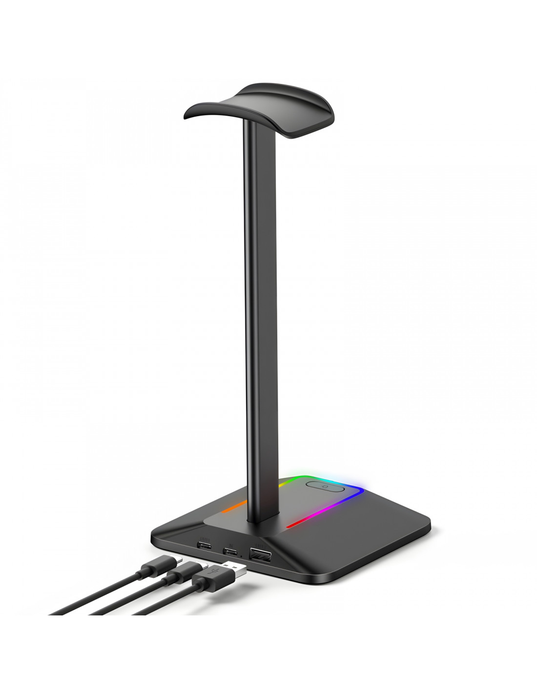 „NEW BEE“ RGB foniniu apšvietimu aprūpintas ausinių stovas su USB 2.0 šakotuvu yra praktiškas ir stilingas sprendimas jūsų stalui sutvarkyti. Dėl modernaus dizaino, stabilios konstrukcijos ir papildomų funkcijų jis idealiai tinka namams, biurui ar žaidimų aplinkai.