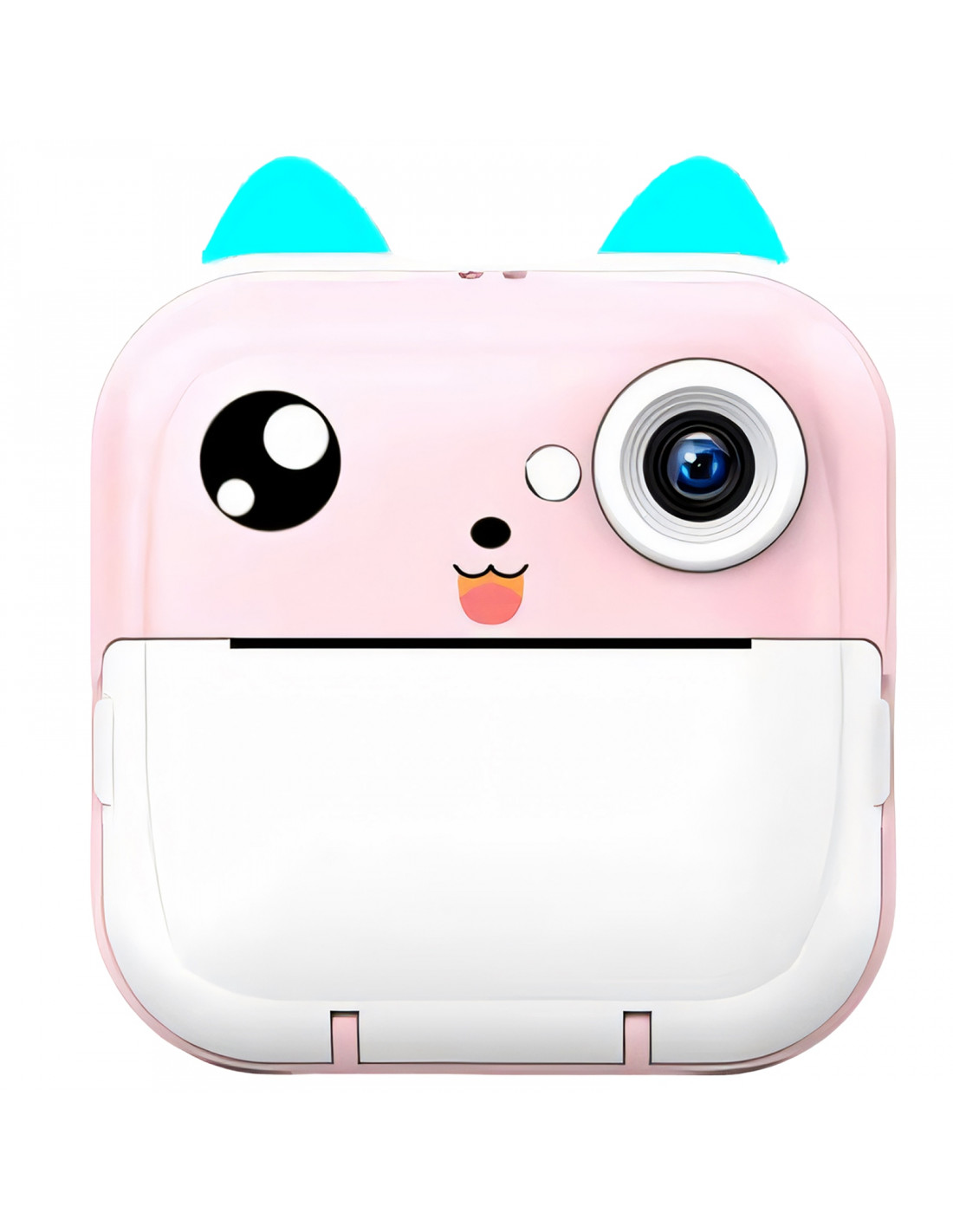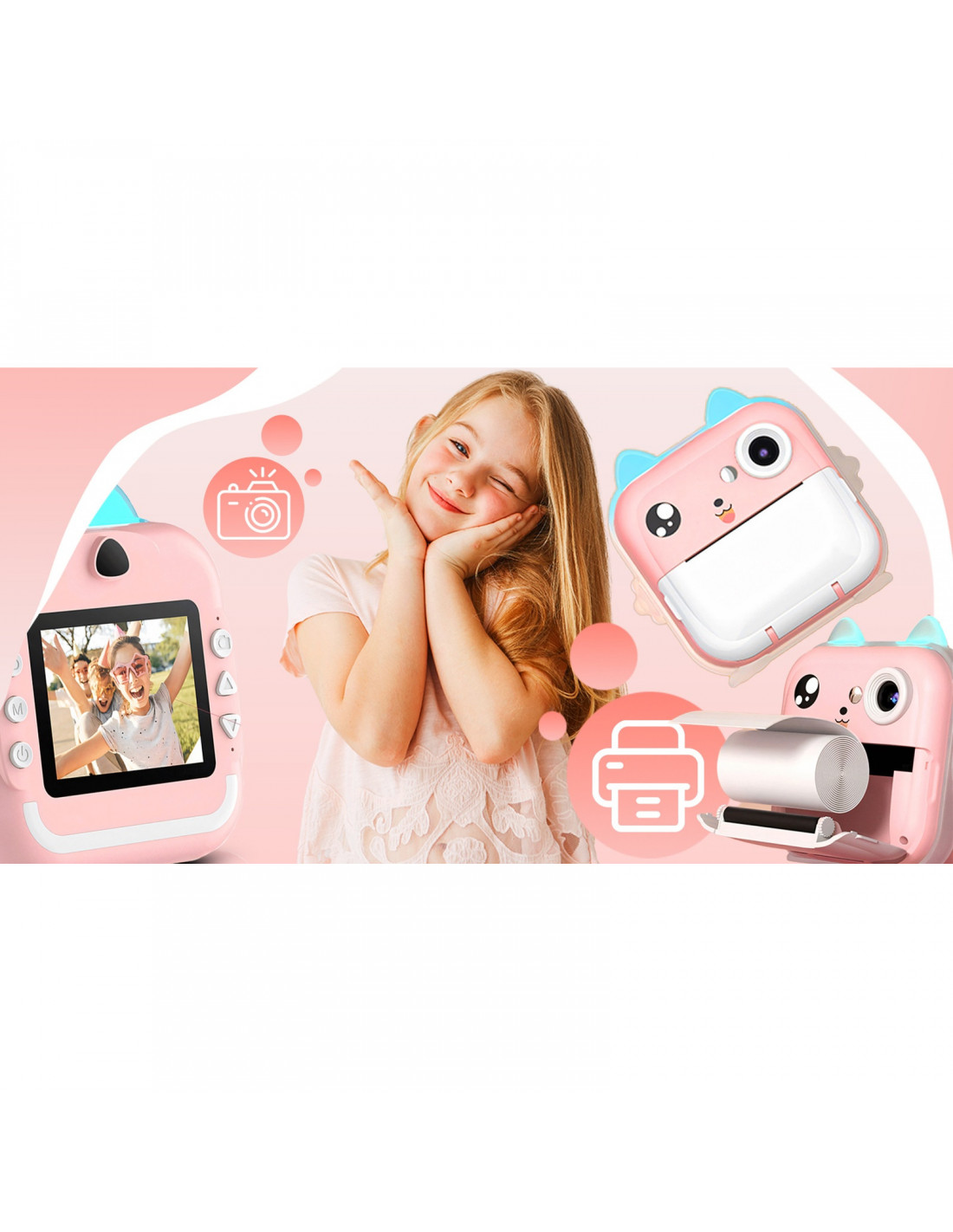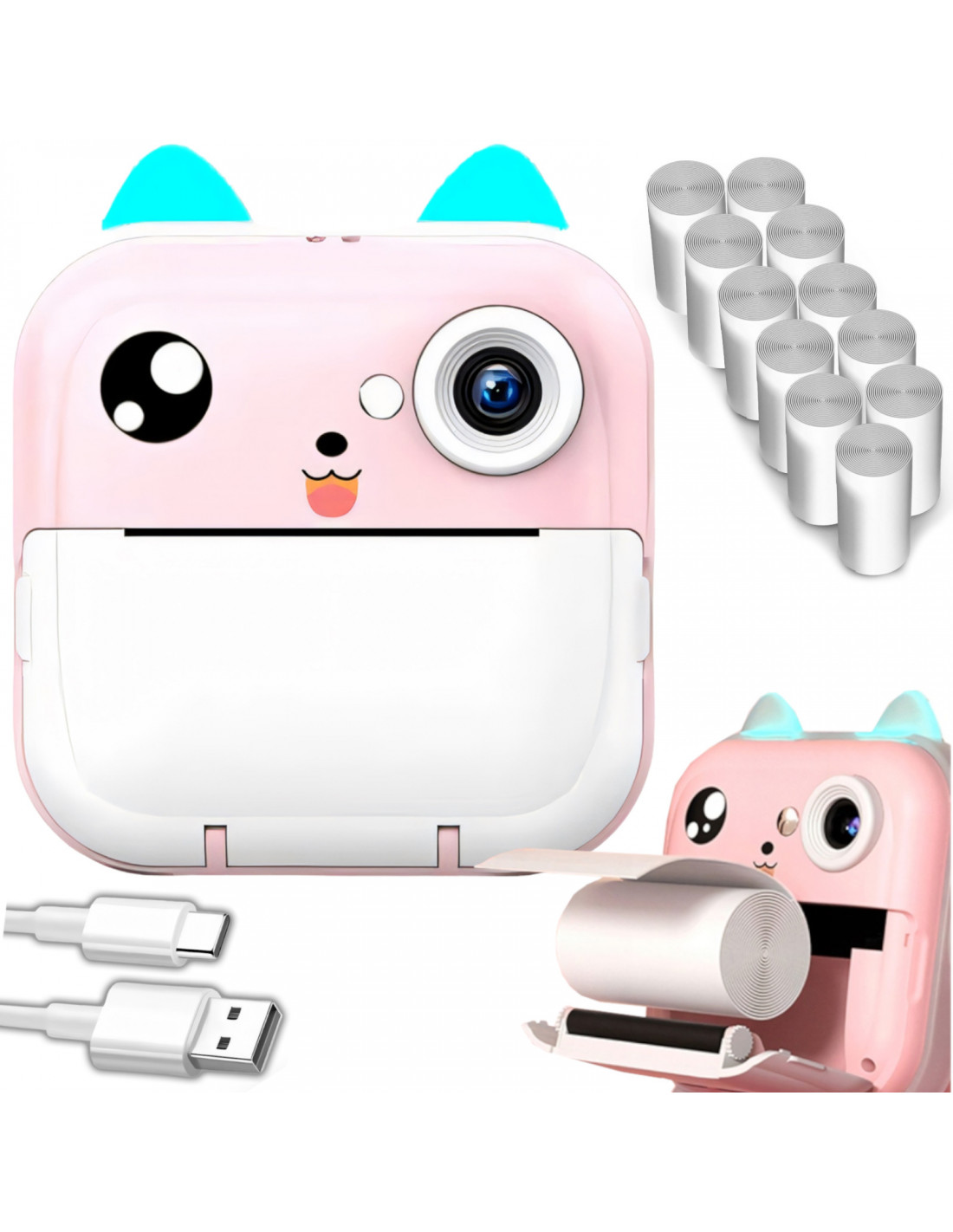 Terminis spausdintuvas vaikams su kamera, garsiakalbiu, 5 žaidimais, Mini Cat, 11 ritinėlių - rožinis
