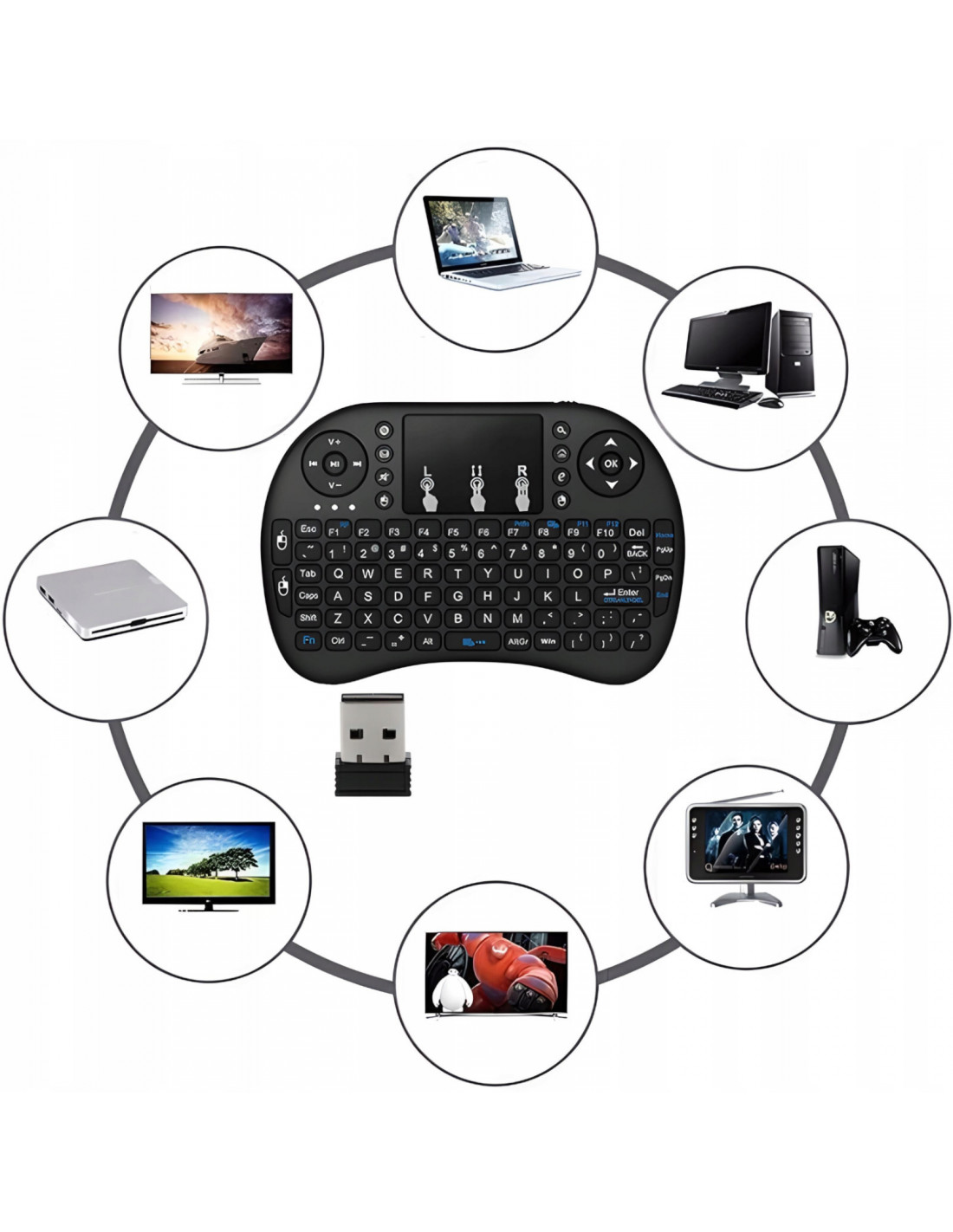 Ši mini belaidė klaviatūra su jutikliniu skydeliu ir RGB LED foniniu apšvietimu yra kompaktiškas ir daugiafunkcis įrenginys, idealiai tinkantis valdyti išmaniuosius televizorius, kompiuterius, žaidimų konsoles ir kitus multimedijos įrenginius. 2,4 GHz belaidis ryšys užtikrina patogų naudojimą iki 15 metrų atstumu , o integruotas jutiklinis skydelis su gestų palaikymu panaikina papildomos pelės poreikį. Klaviatūra siūlo septynias LED foninio apšvietimo spalvas , kurias galima pritaikyti pagal jūsų pageidavimus. Įrenginys suderinamas su keliomis operacinėmis sistemomis ir veikia pagal poreikį , nereikia diegti tvarkyklių.