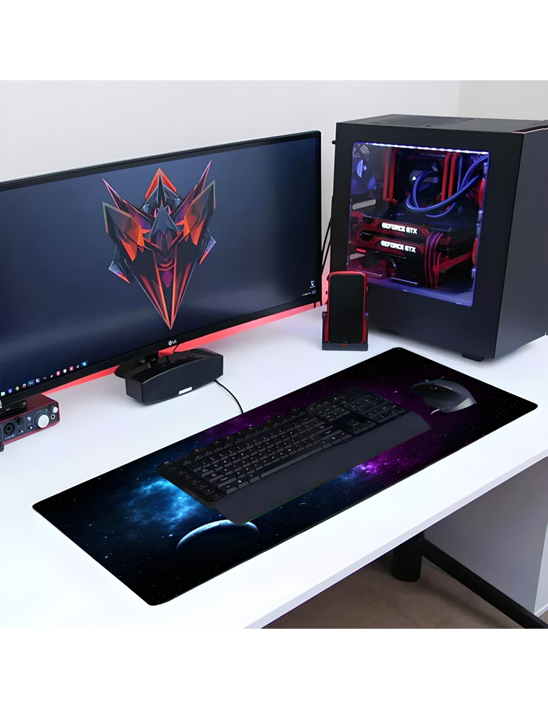 Šis didelis 800 x 400 mm žaidimų pelės kilimėlis yra puikus sprendimas tiek žaidėjams, tiek biuro darbuotojams. Jis užtikrina tikslų žymeklio valdymą, sklandų pelės judėjimą ir didelį naudojimo patogumą. Dėl lanksčių ir patvarių medžiagų jis tarnaus ilgai, o minimalistinis dizainas su kosmoso motyvu puikiai atrodo ant bet kurio stalo.